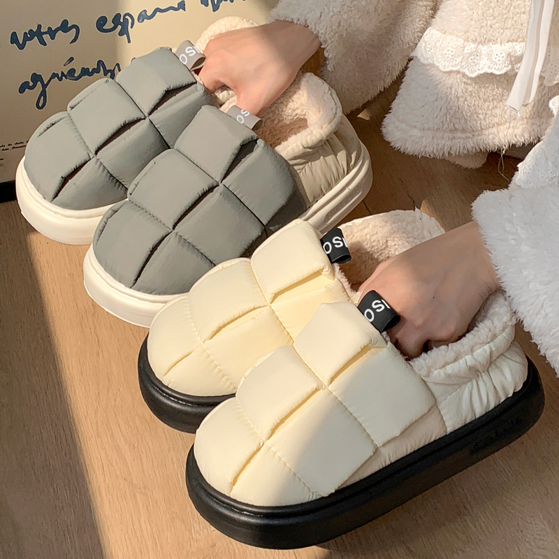 女 保暖亲肤轻便格子包跟拖鞋 名创优品冬季 简约休闲居家男棉拖鞋