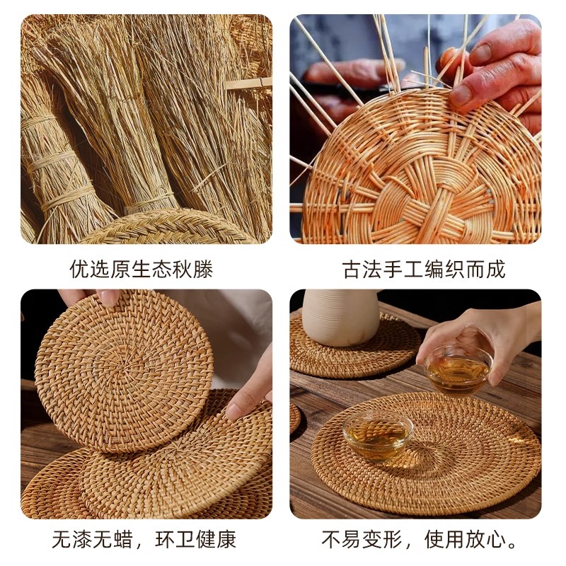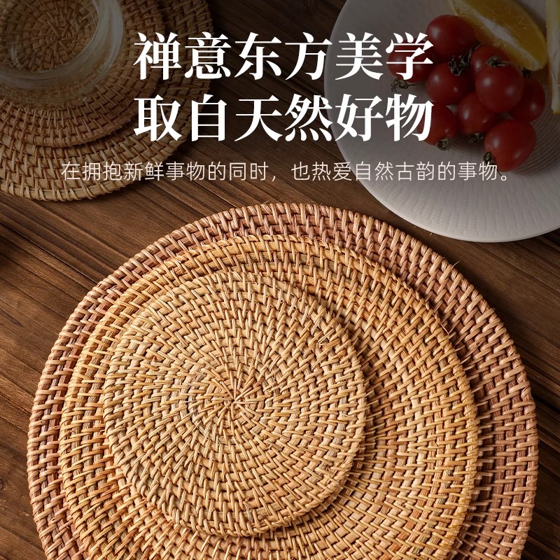 2025新款 中古风藤编隔热垫餐桌防烫耐高温厨房防滑锅垫盘子碗垫子