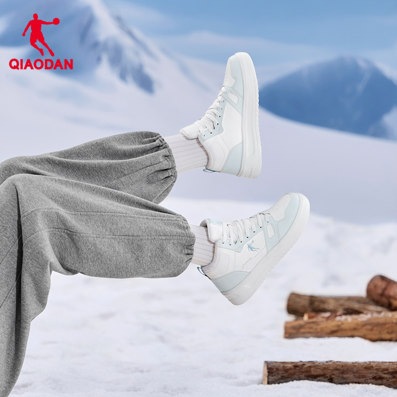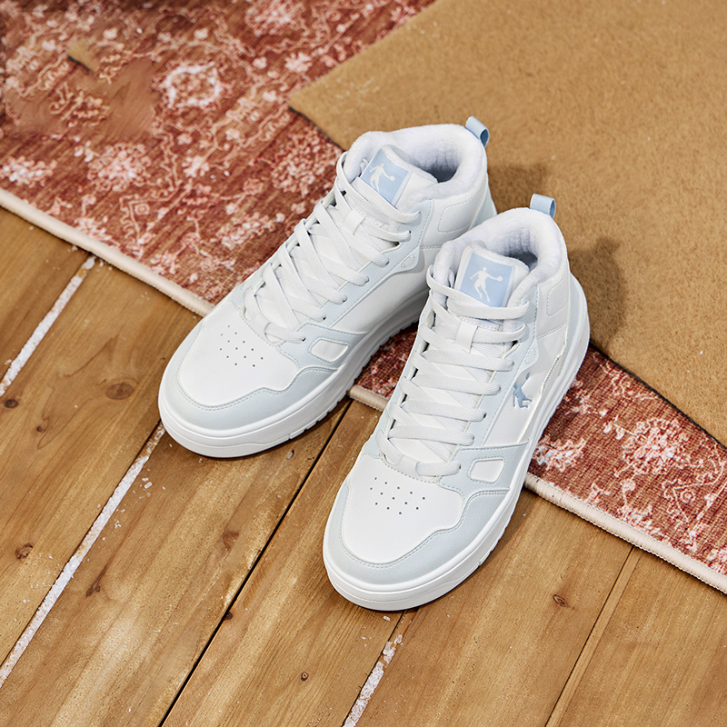 学生休闲运动鞋 乔丹加绒防风高帮板鞋 新款 皮面秋冬季 女子防水棉鞋