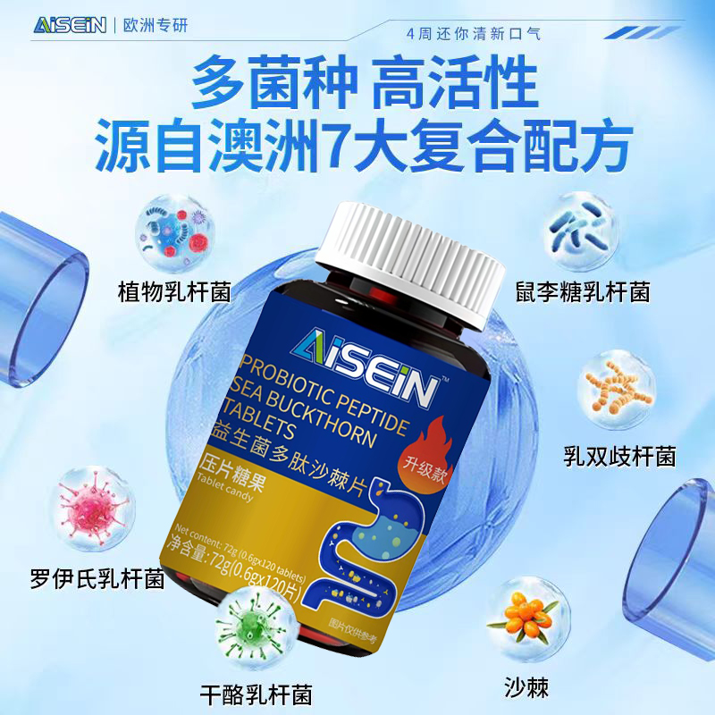 益生菌多肽沙棘片口臭空气肠胃女士男士 口腔异味胃火重嘴巴臭调理