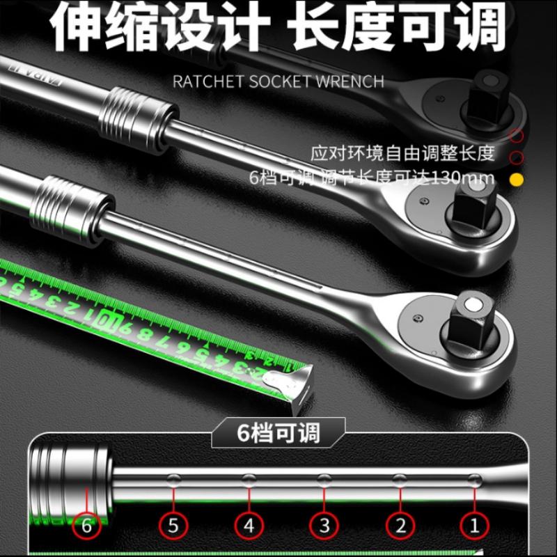 伸缩棘轮快脱棘轮套筒扳手直柄快速扳手72齿大中小飞双向快速工具