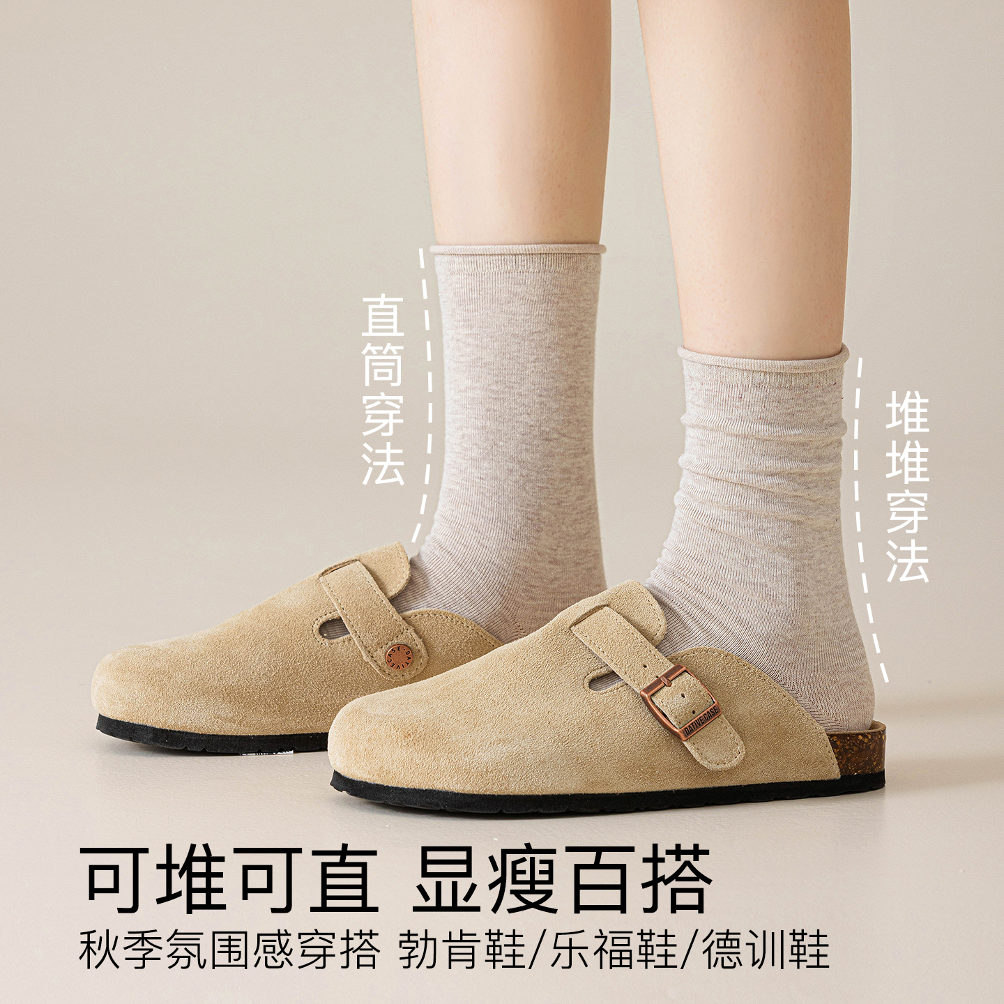 灰色袜子女春秋堆堆长筒袜防臭月子袜无骨透气吸汗纯色棉袜中筒袜