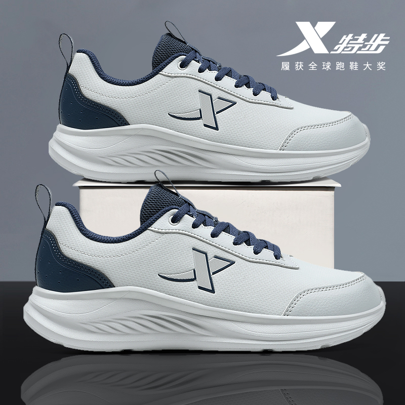 皮面男士 2025秋冬新款 休闲鞋 旅游鞋 特步男鞋 耐磨减震跑步鞋 运动鞋
