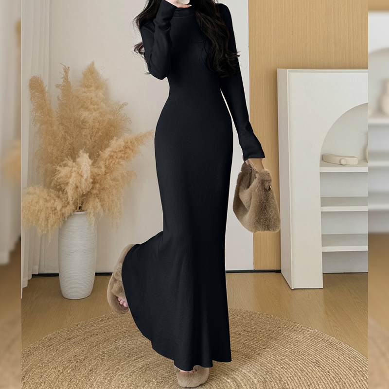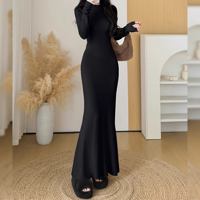 超长款 高腰打底长裙高个子 高领针织鱼尾连衣裙女秋冬大衣内搭修身