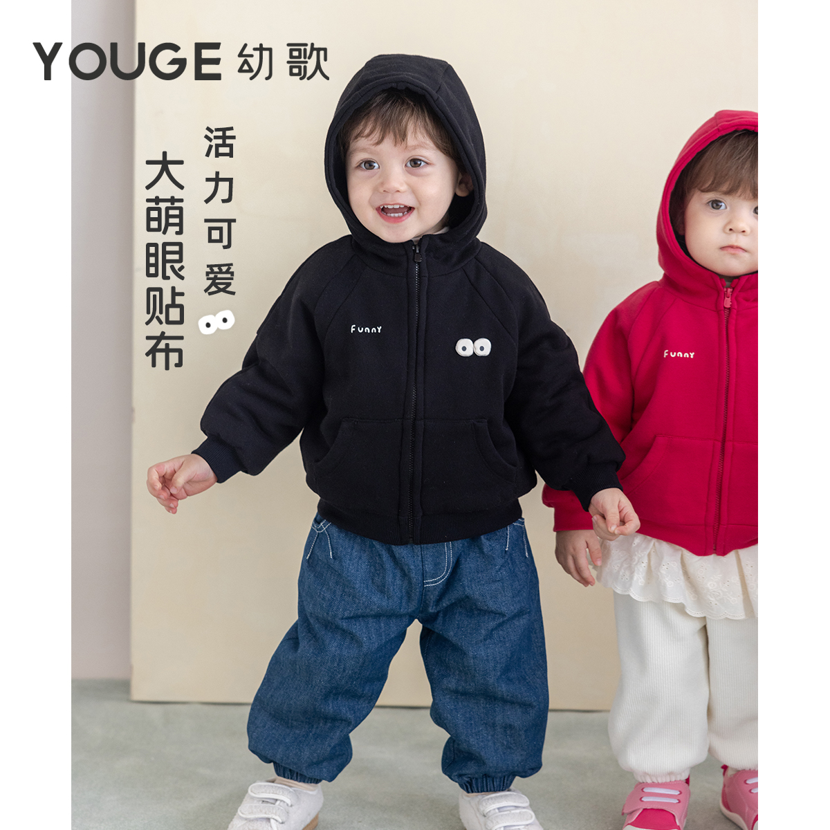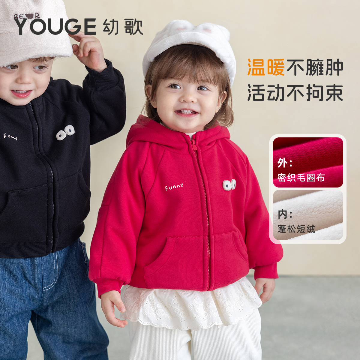 厚外套 幼歌婴幼儿秋冬童趣加绒防风保暖连帽开衫 前28h免定金