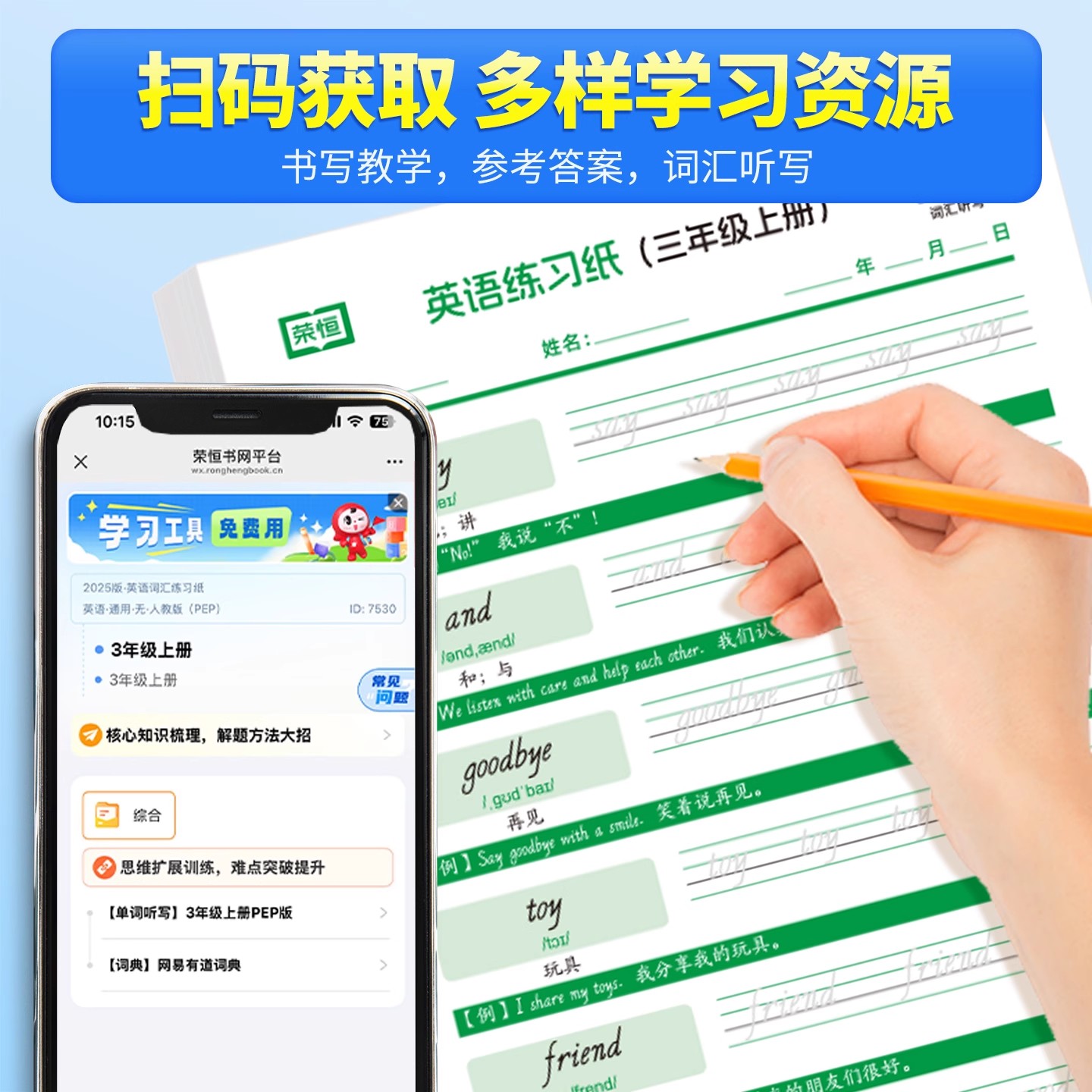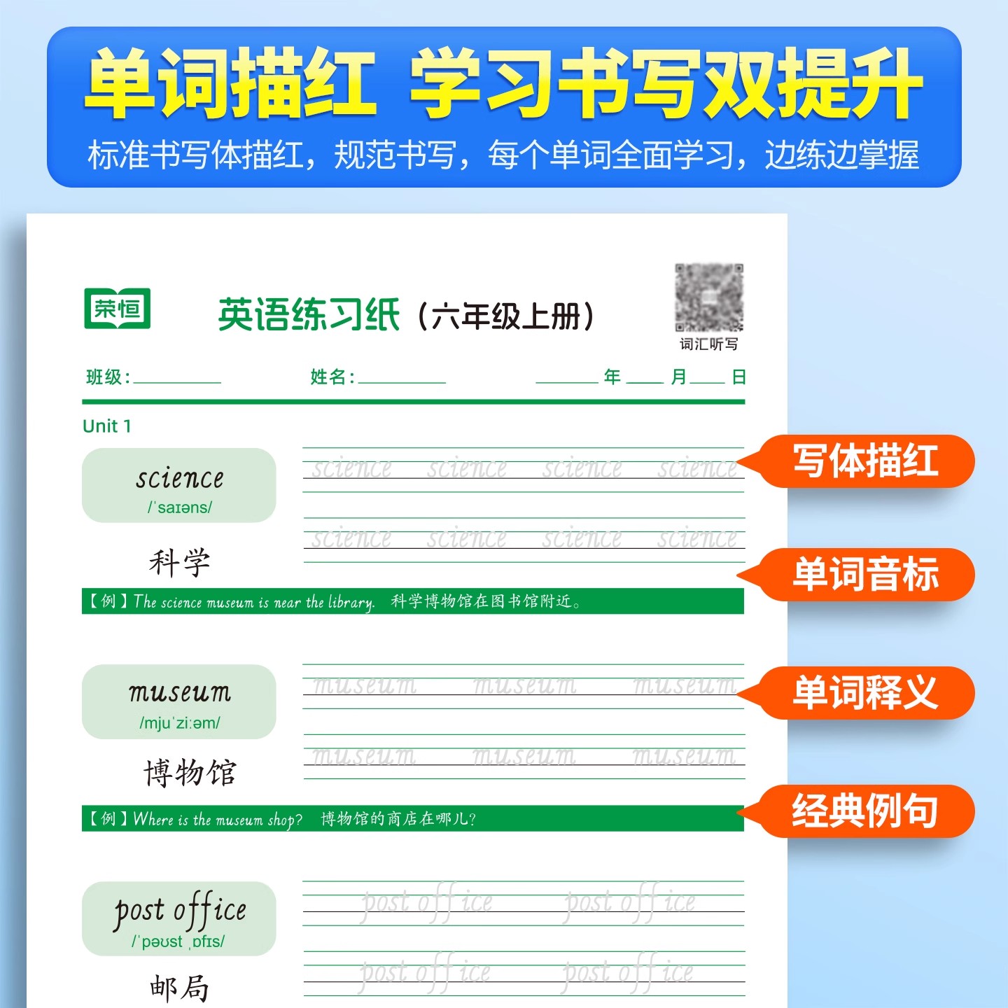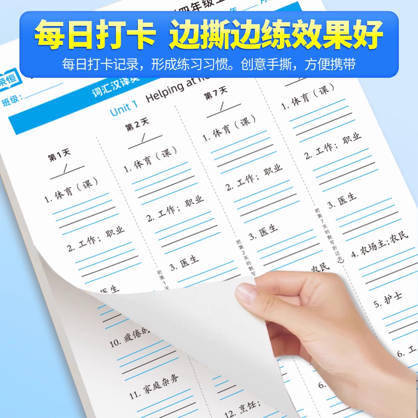 小学英语默写纸手撕字帖三四五六年级上册下册人教版 活页默写课本同步字帖小学生单词句子抄写本英汉互译单词练习纸英语听写练习贴