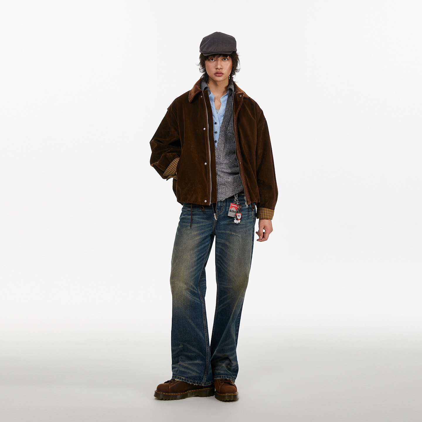 宽松大码 迈特优假两件翻领夹克男士 美式 2025新款 休闲外套 春季
