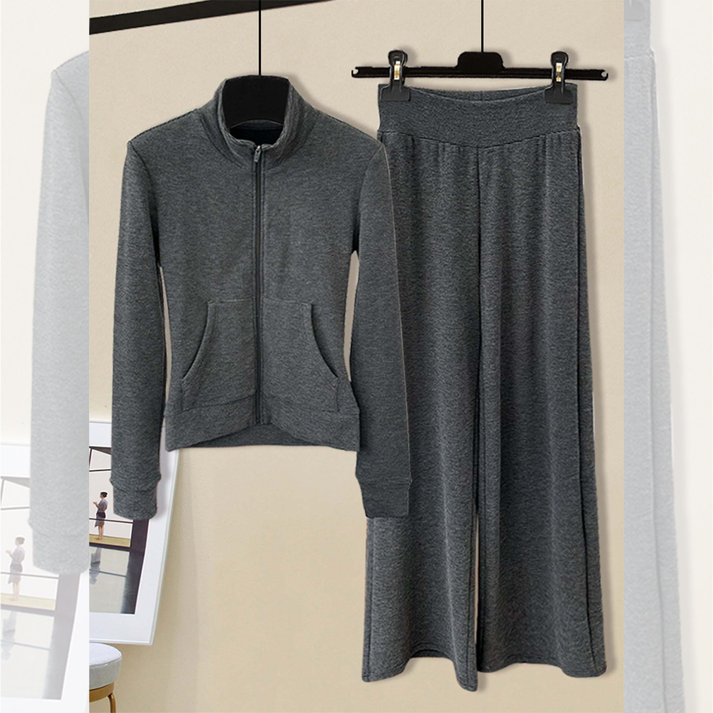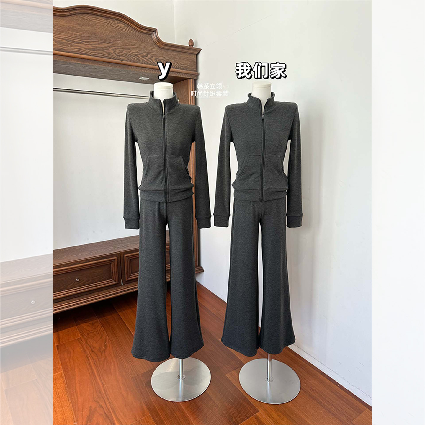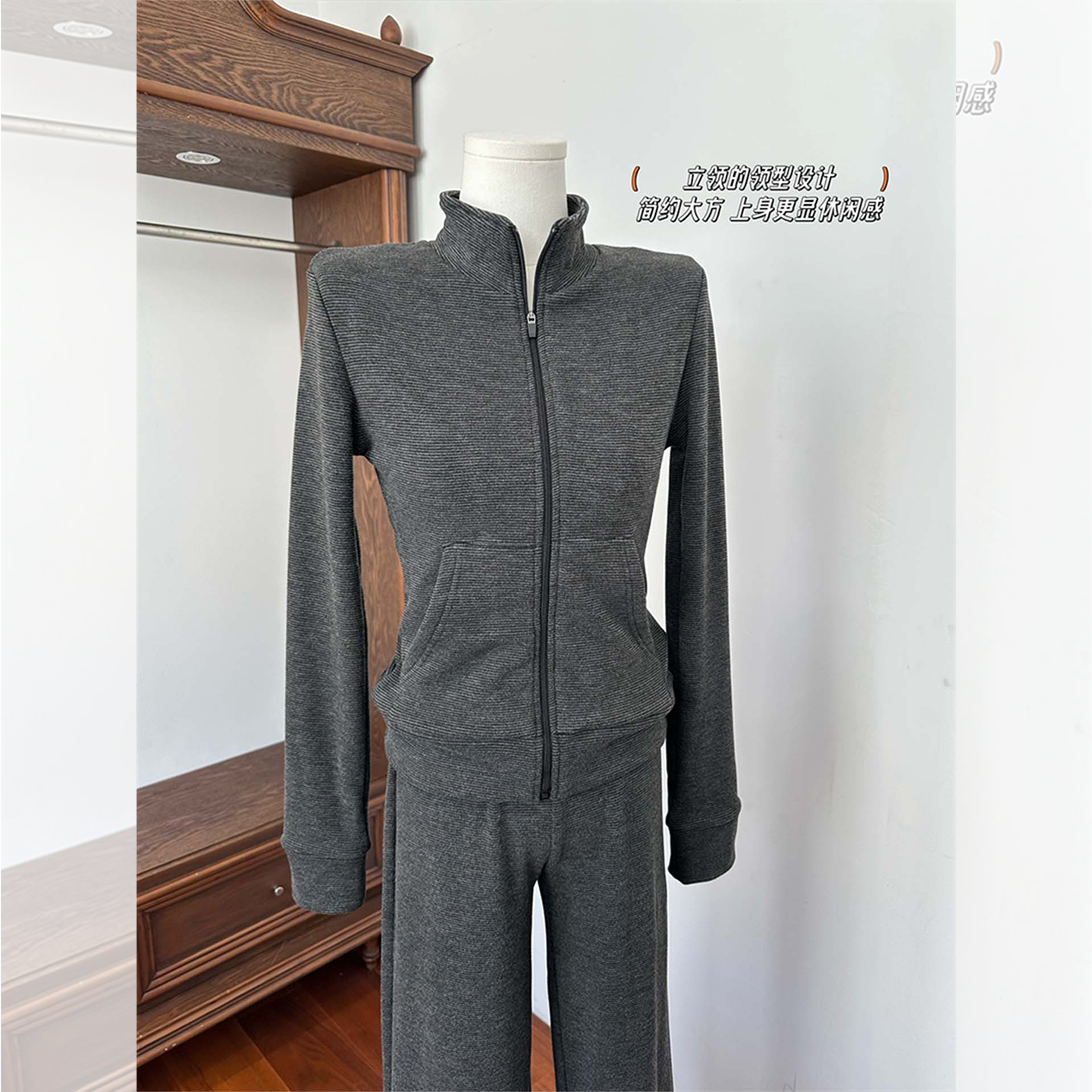 运动休闲长裤 韩系修身 两件套 女2025年秋季 休闲慵懒风立领卫衣套装