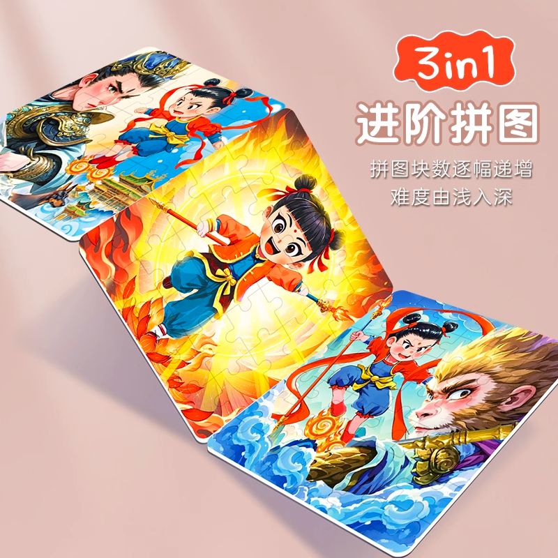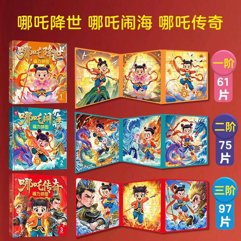 哪吒磁力拼图儿童磁力拼图3到6岁以上8 10进阶7男女孩益智哪吒玩具进阶平图哪吒闹海哪吒降世哪吒传奇拼图拼图书