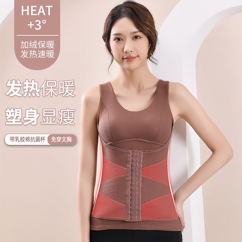 塑身德绒保暖背心女带胸垫排扣强效收腹加绒加厚秋冬内搭打底A