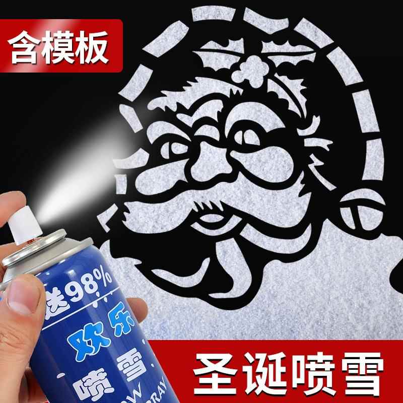 耶诞喷雪彩色喷罐模板玻璃喷雾泡沫喷雪花装 饰喷彩带彩条白雪耶诞