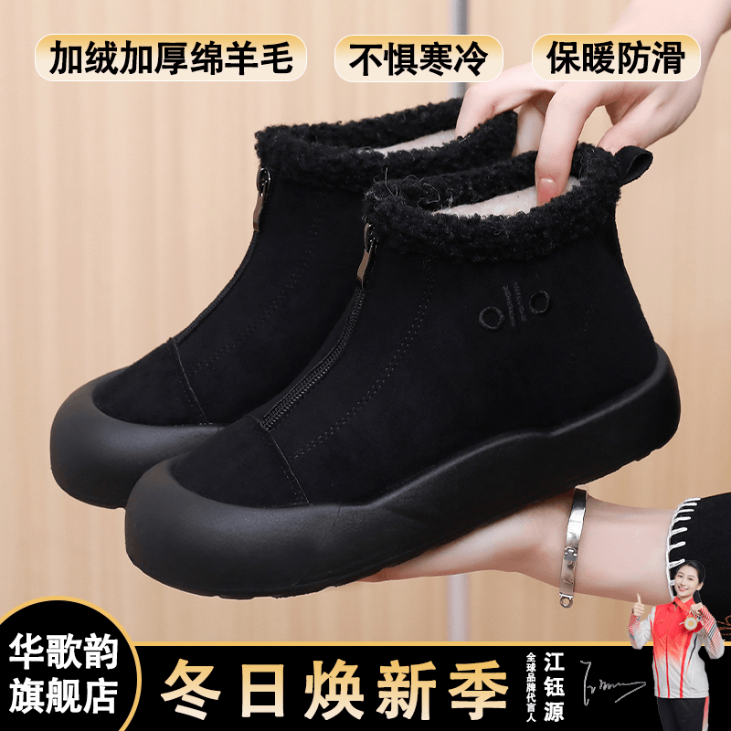 厚底休闲鞋 冬新款 老北京棉靴加绒保暖绵羊毛雪地靴舒适软底妈妈鞋
