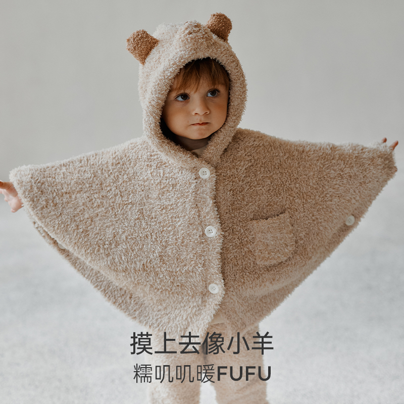 Family婴幼儿半边绒斗篷冬季 Oak 外出加厚保暖宝宝披肩 新品