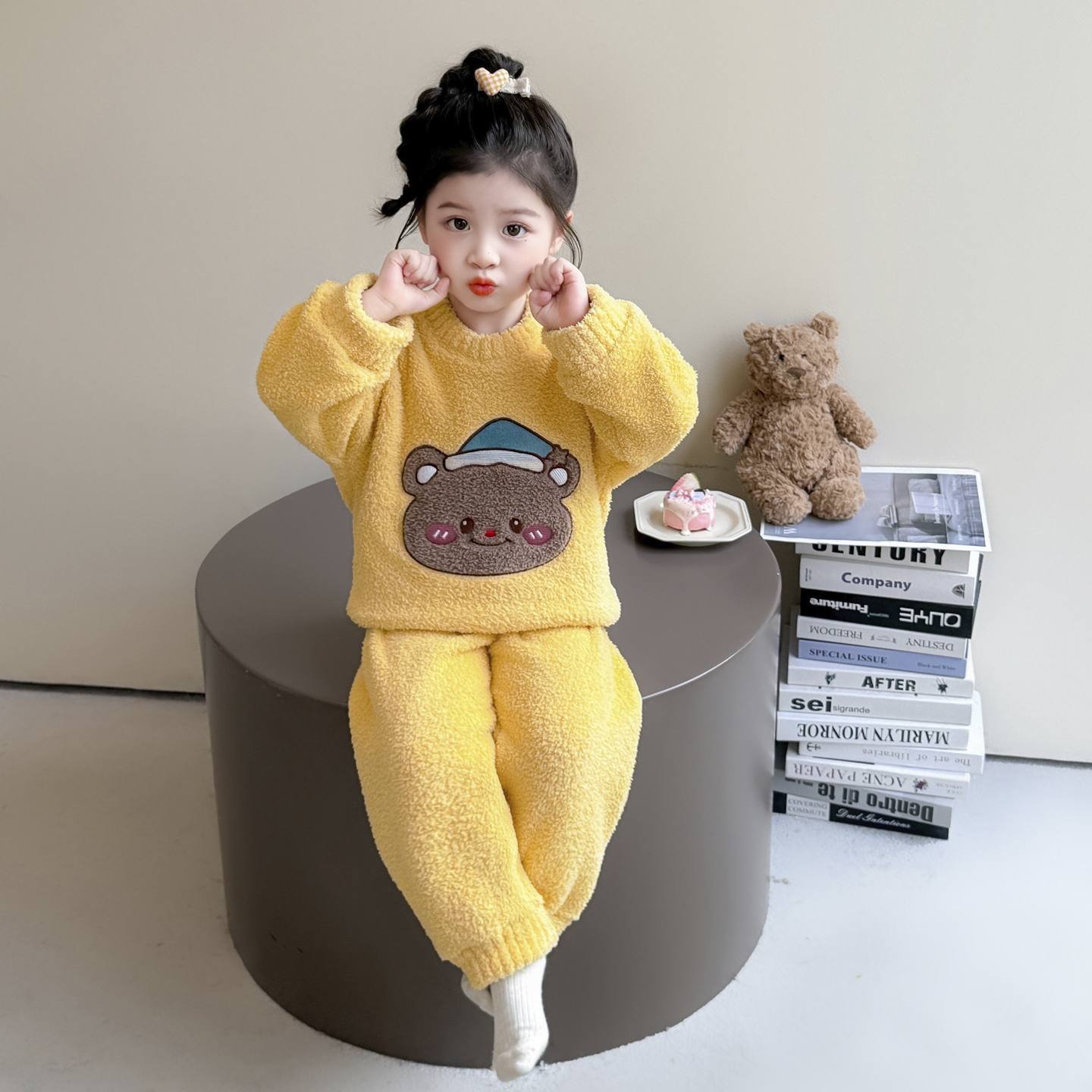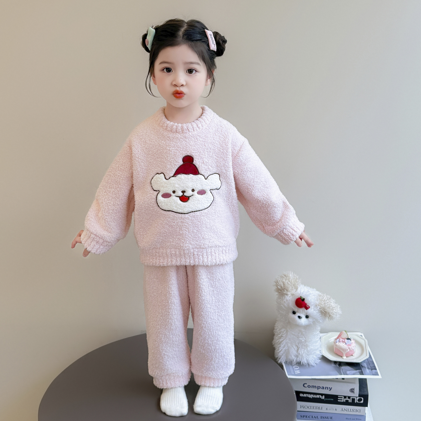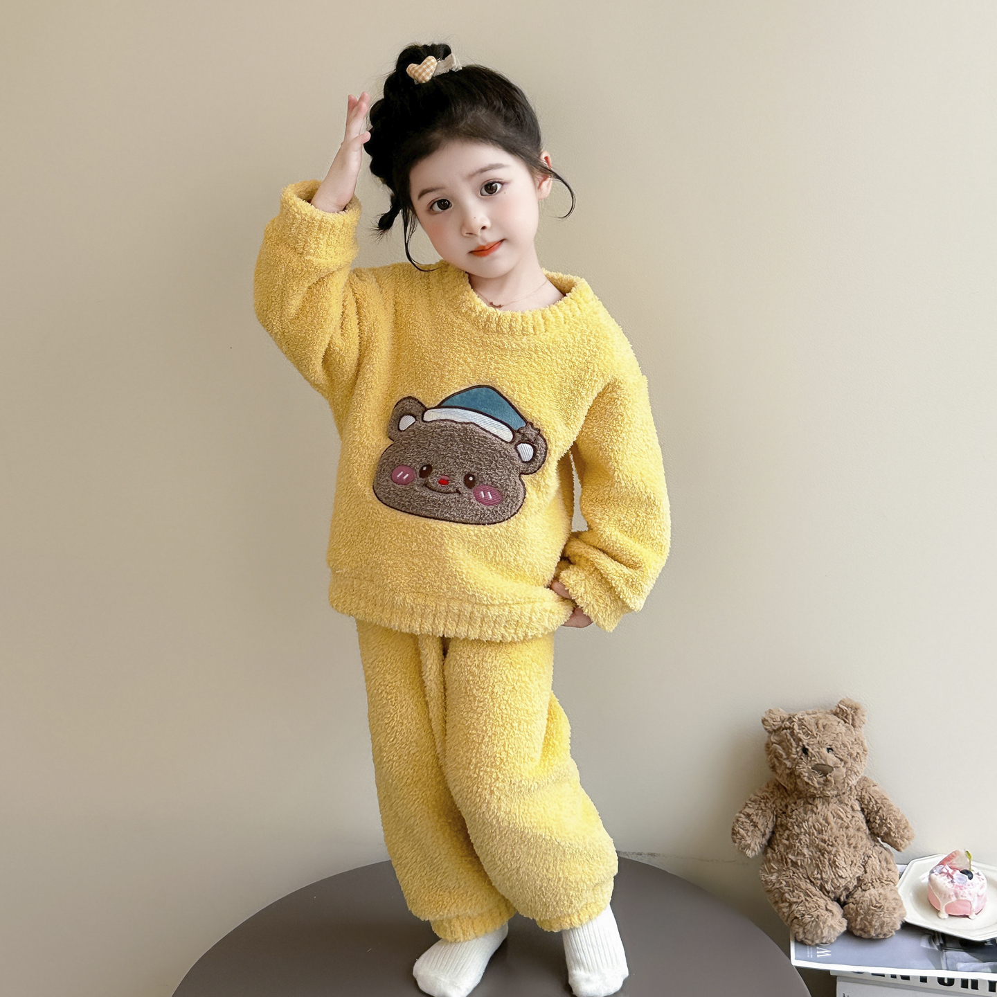 女童睡衣冬保暖半边绒女孩公主家居服儿童套装 宝宝加厚珊瑚绒睡衣