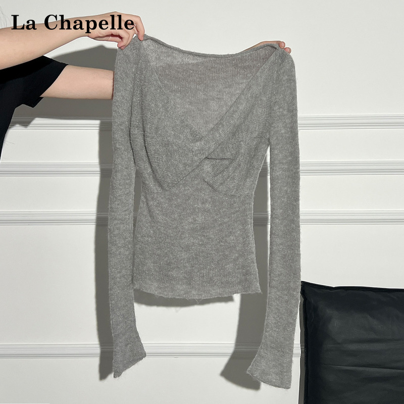 软糯独特别致套头上衣 女2025秋季 拉夏贝尔V领扭结长袖 针织打底衫