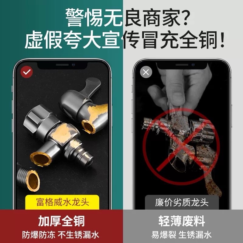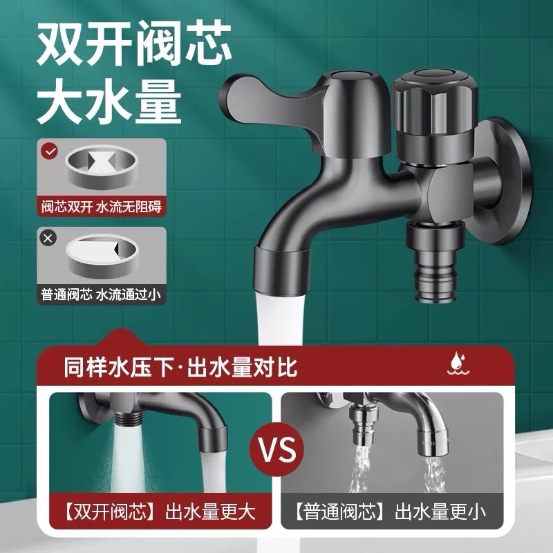 四分螺纹洗衣机专用水龙头一进二出三通双控双出水一分二接头全铜