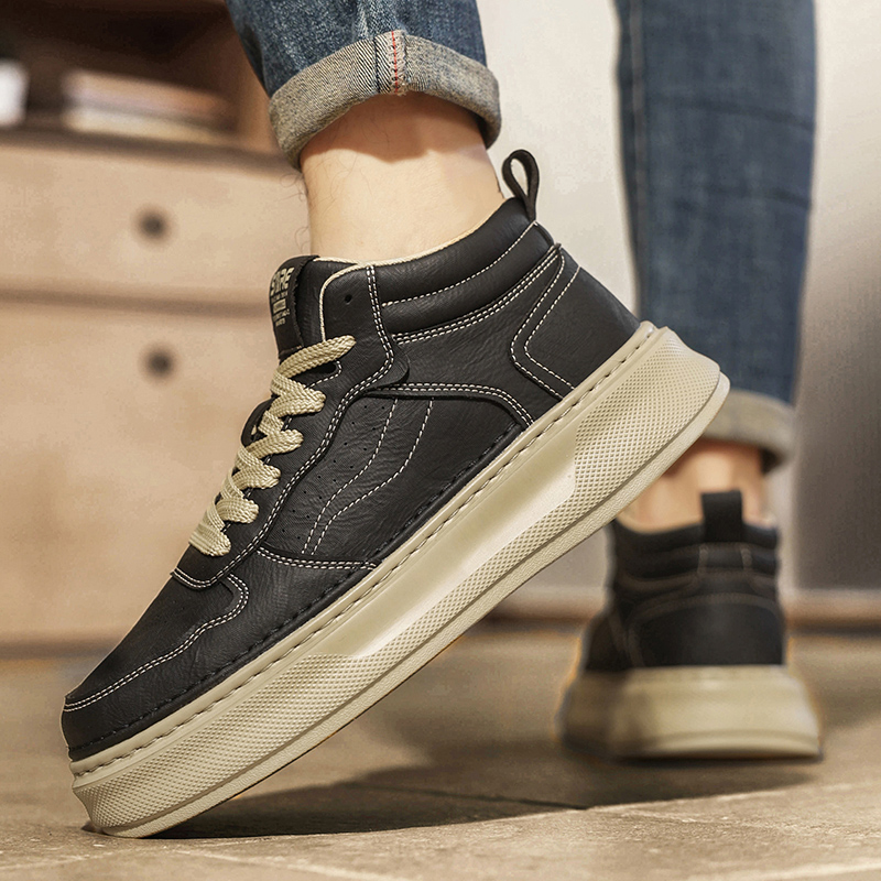 靴子 真皮防水厚底增高工装 森马马丁靴男秋季 高帮百搭休闲白色板鞋