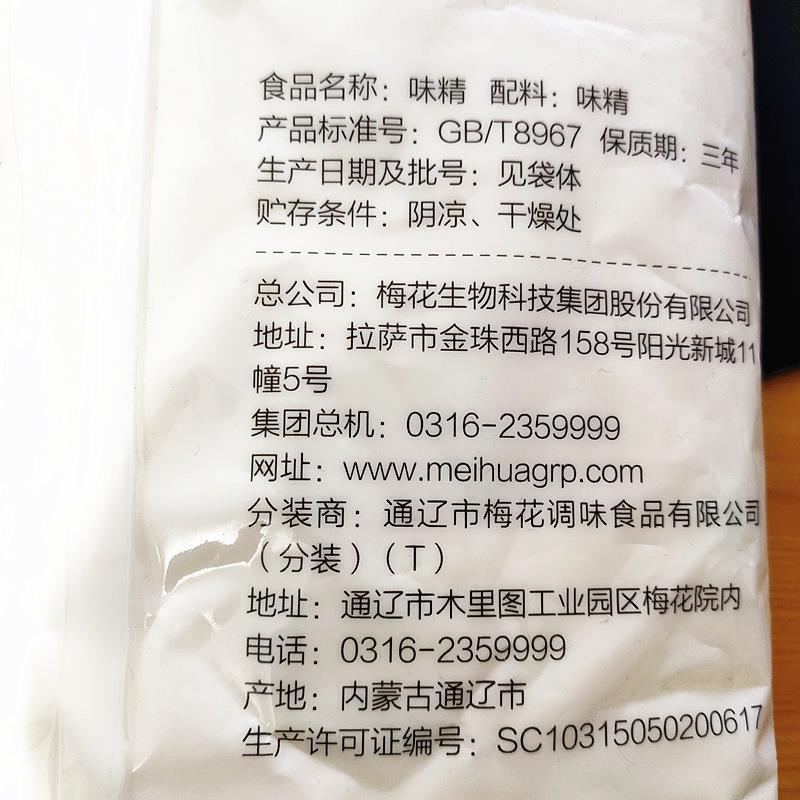 梅花味精2kg粉末状60目99无盐纯速溶细味精餐饮装 大袋商用调味料