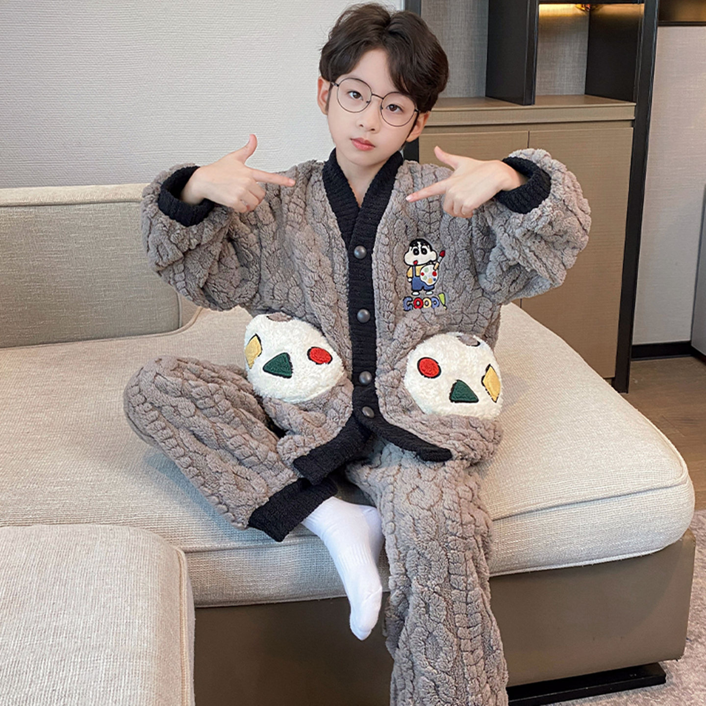 2025新款 加厚保暖中大童男孩洋气家居服 儿童珊瑚绒睡衣男童秋冬季