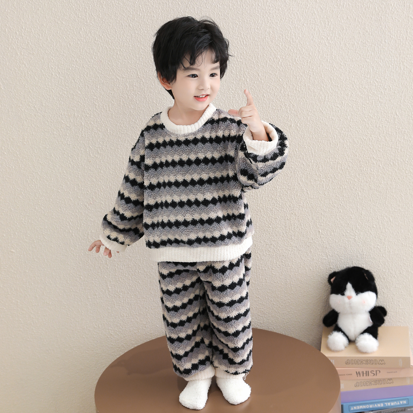 珊瑚绒套装 法兰绒加厚儿童家居服冬装 2025新款 男童加绒睡衣秋冬季