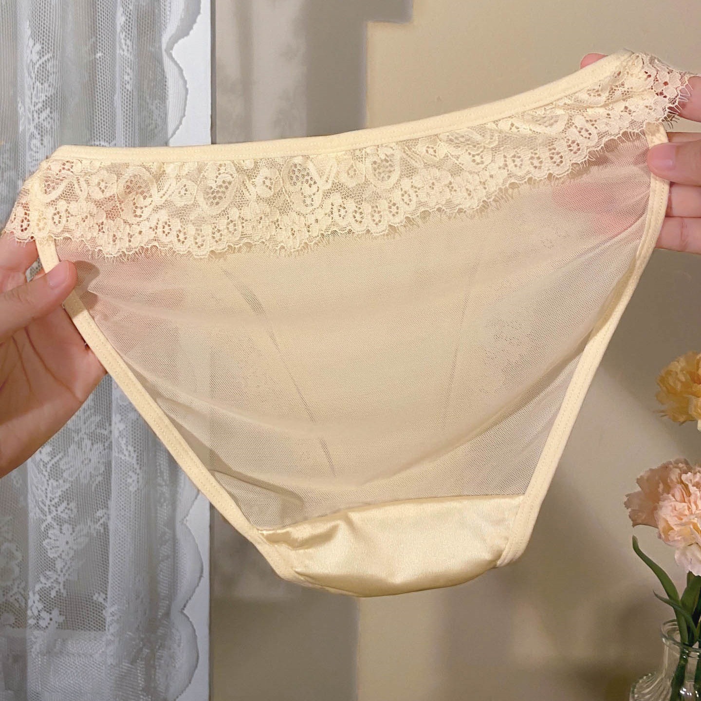 女纯欲镂空低腰纯棉裆女士三角裤 缎面性感蕾丝内裤 法式 月光暧昧