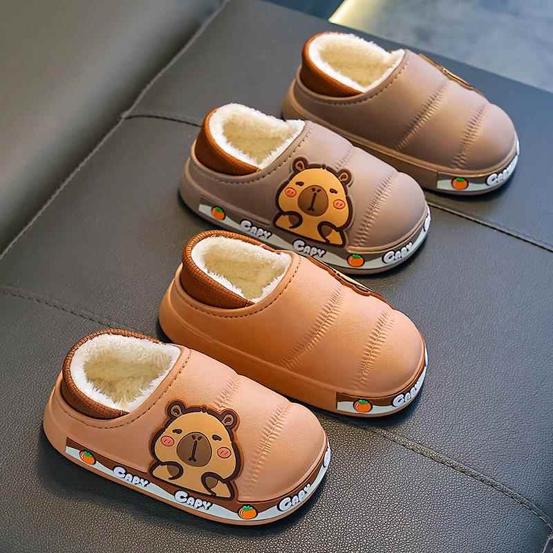 卡通可爱防滑室内女孩宝宝棉鞋 卡皮巴拉儿童棉拖鞋 包跟男童冬季