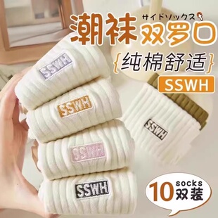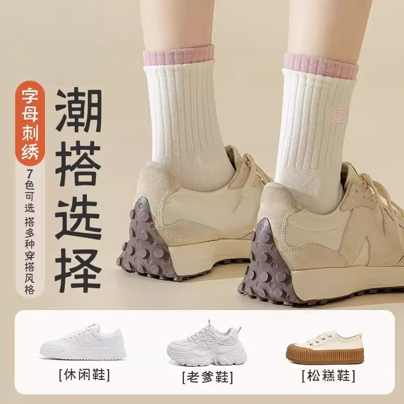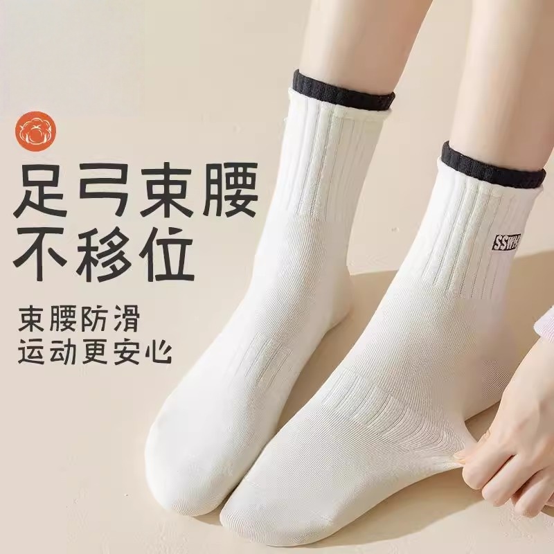 诸暨袜子女士中筒袜秋冬保暖透气纯棉白色运动袜网红无骨长筒袜潮