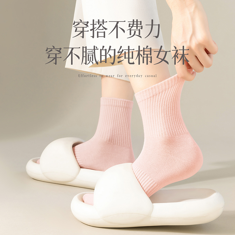 爆款 短袜纯棉无骨甜美短筒袜2025新款 春秋中筒袜 薄款 袜子女士夏季