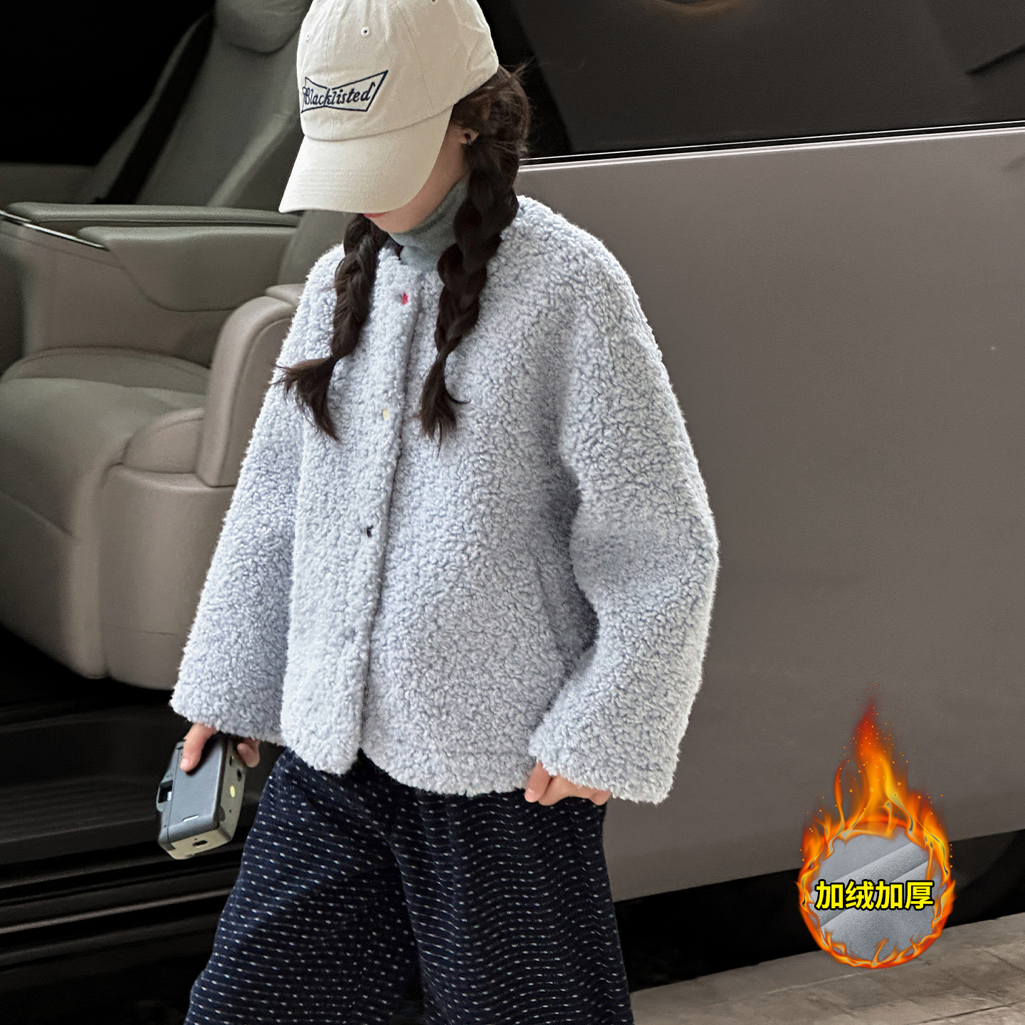 洋气时髦女孩毛毛衣 儿童上衣加厚秋冬装 女童加绒外套冬季 2025新款