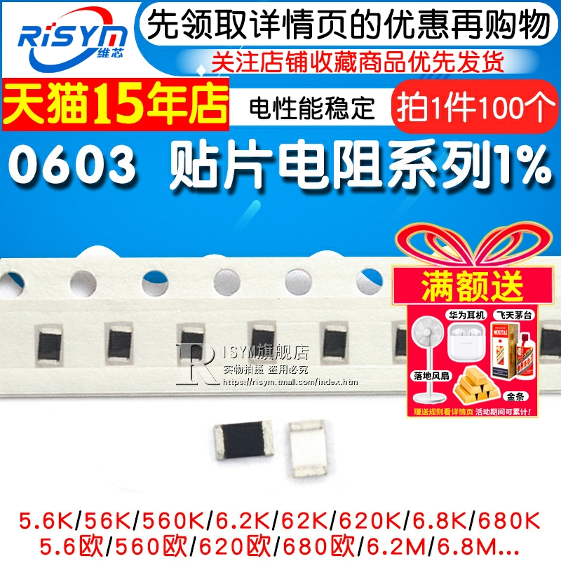 560欧 6.2 68Ω 5.6K 680K 6.8M 56R 620E 0603贴片电阻1% 62欧姆