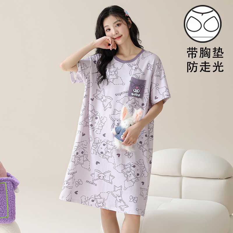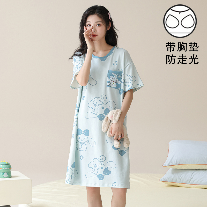 连衣裙休闲卡通睡衣女士家居服2025新款 中长款 纯棉短袖 睡裙女夏季