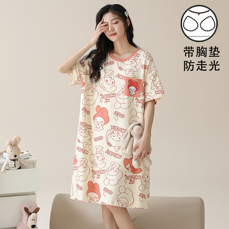 睡衣家居服女生夏天性感连衣裙 可爱短袖 芬腾睡裙女士夏季 纯棉薄款