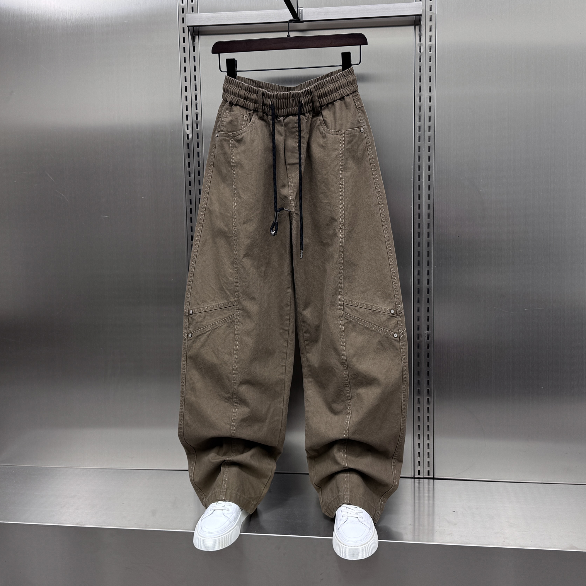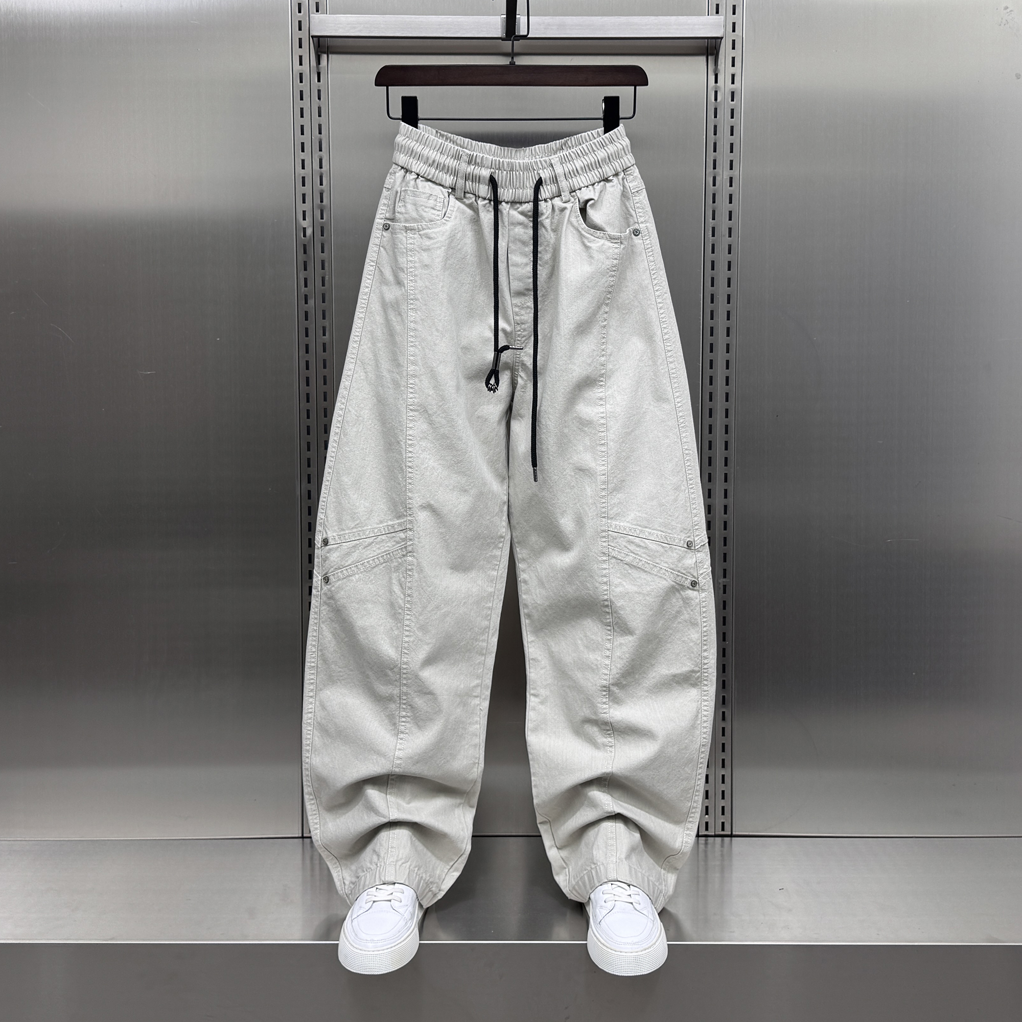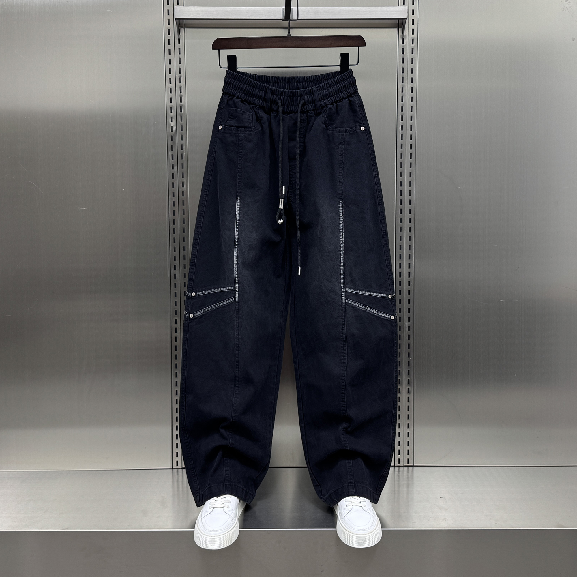 男士 2025秋季 新款 潮牌美式 拼接痞帅直筒弯刀裤 阔腿裤 韩版 休闲大码