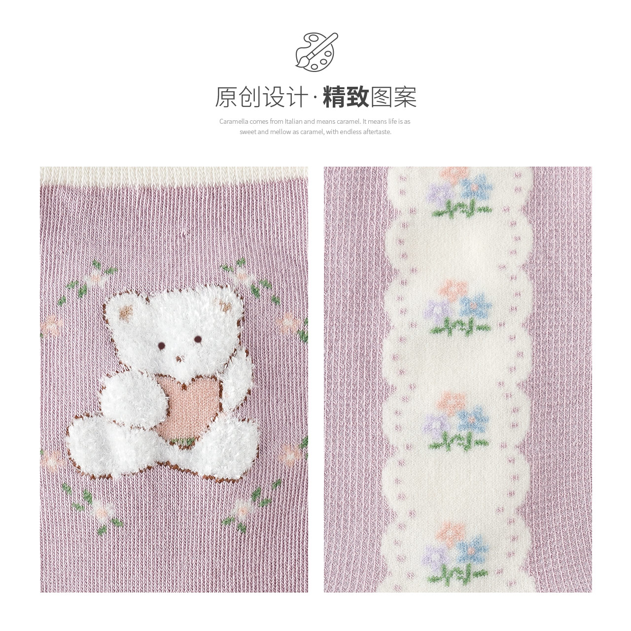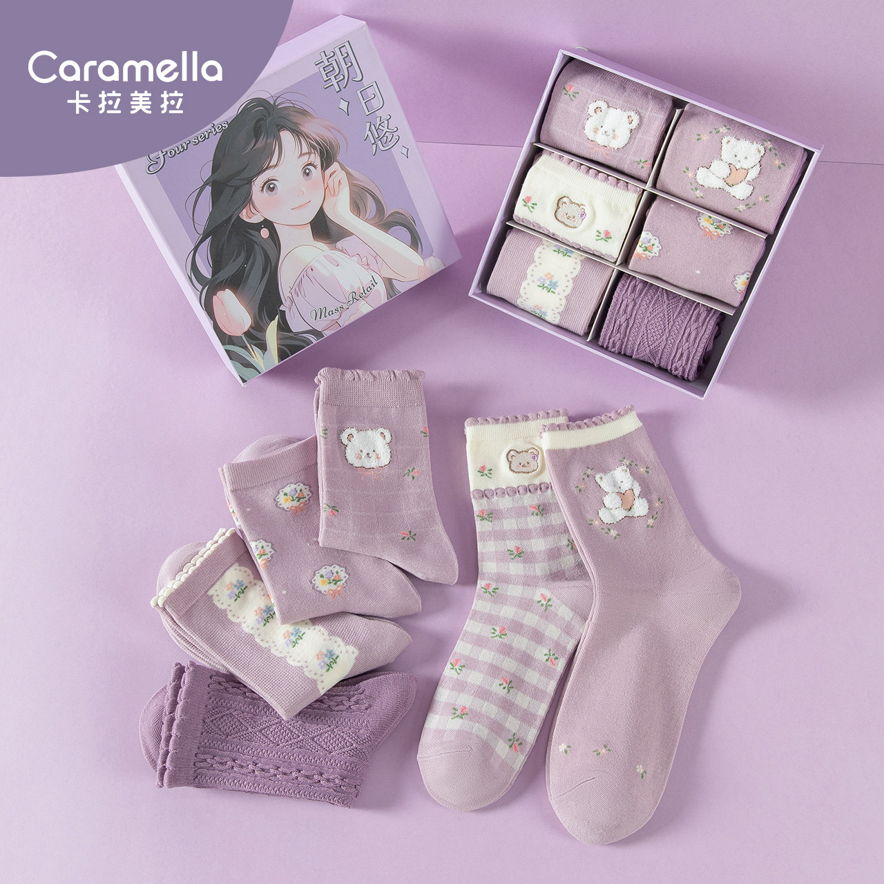 caramella袜子女2025秋冬新款 女袜棉舒适女生可爱中筒袜配小皮鞋
