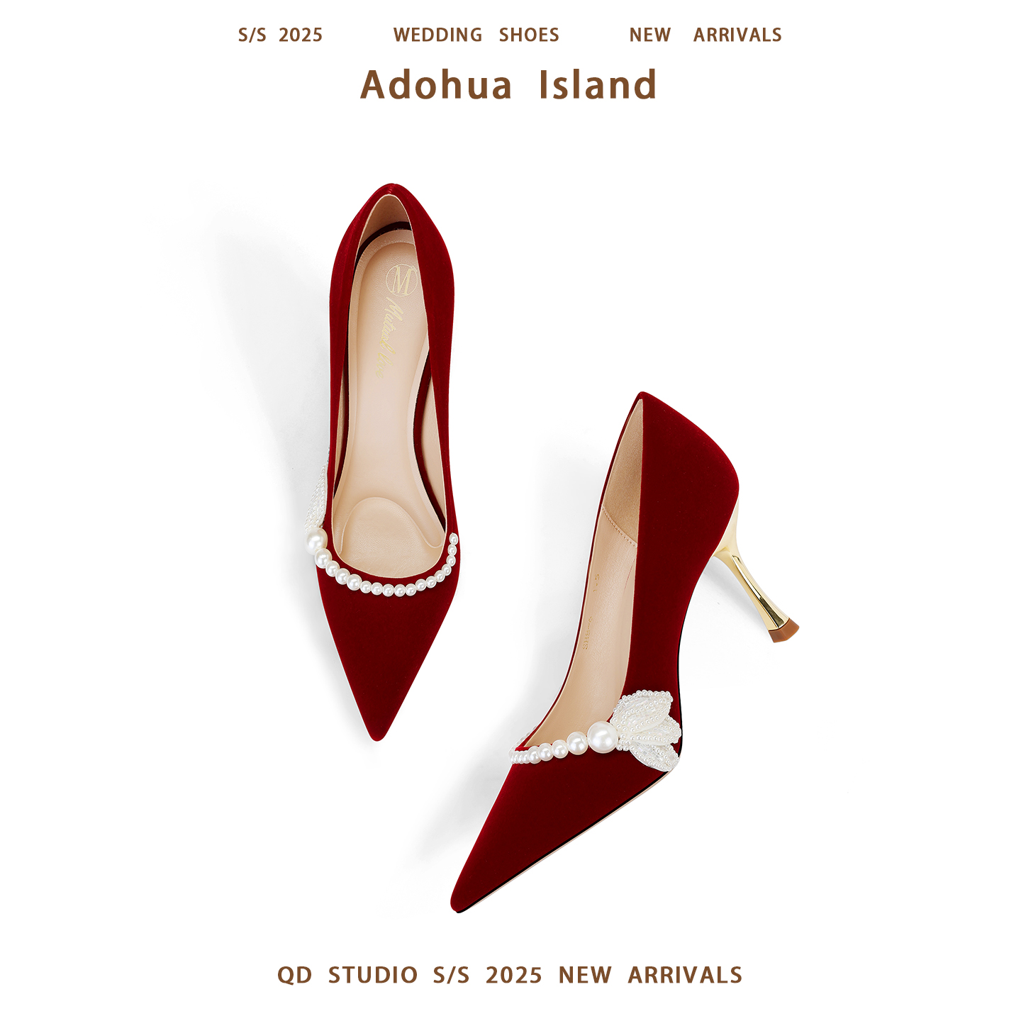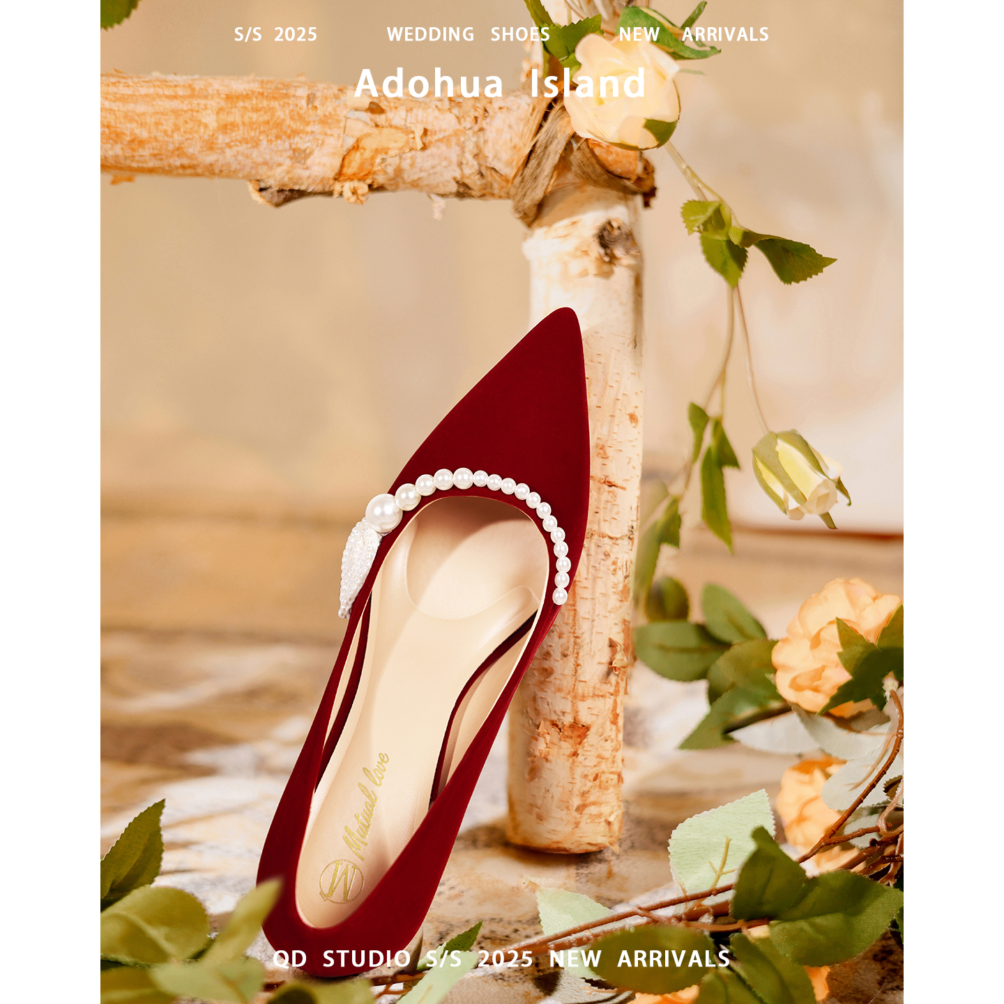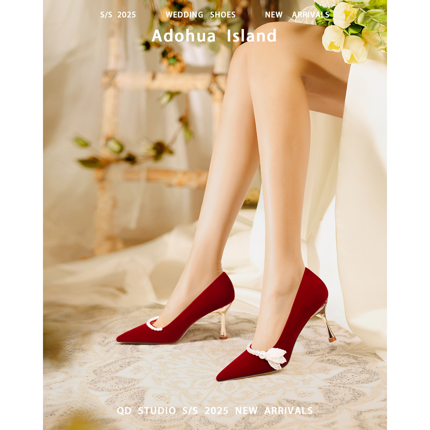 女 主婚纱气质小众孕妇红色敬酒服高跟鞋 结婚绝美不累脚婚鞋 新娘鞋