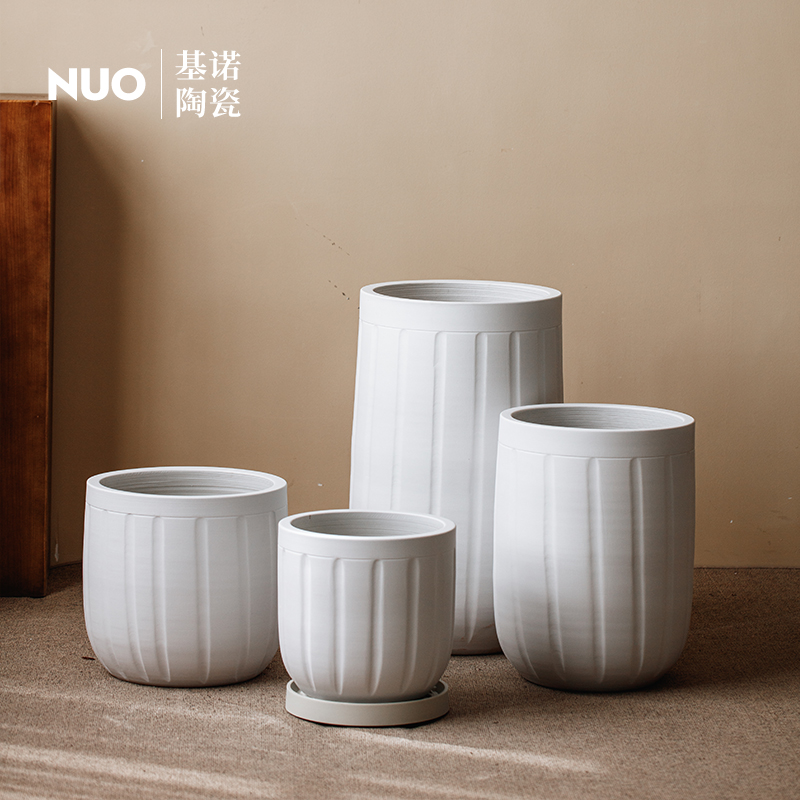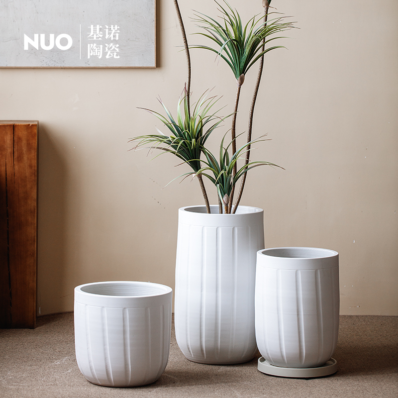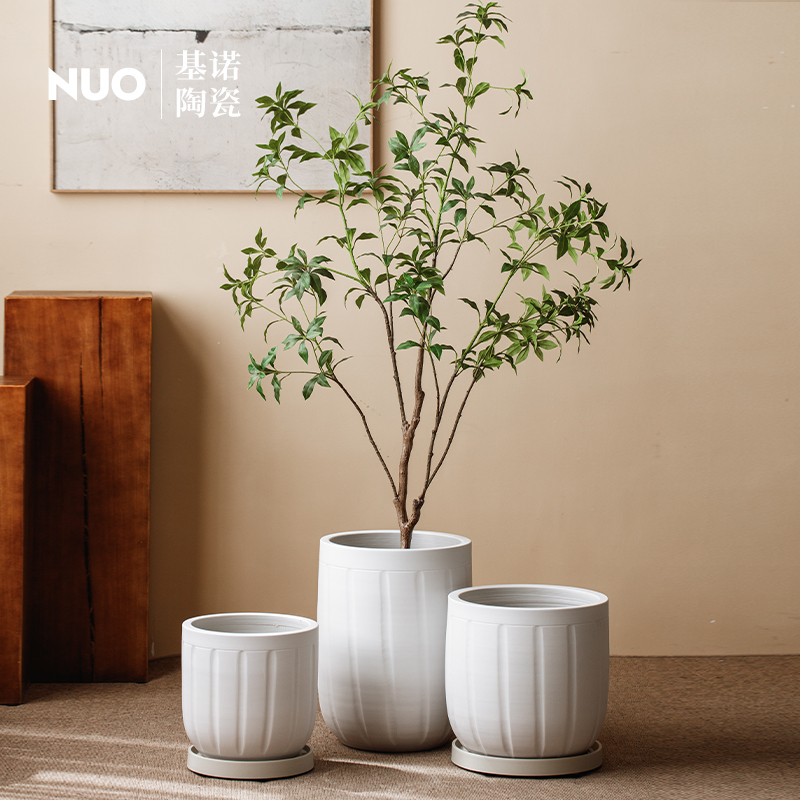 花盆陶瓷白色轻奢简约特价 清仓大号带托盘家用绿萝吊兰多肉小花盆