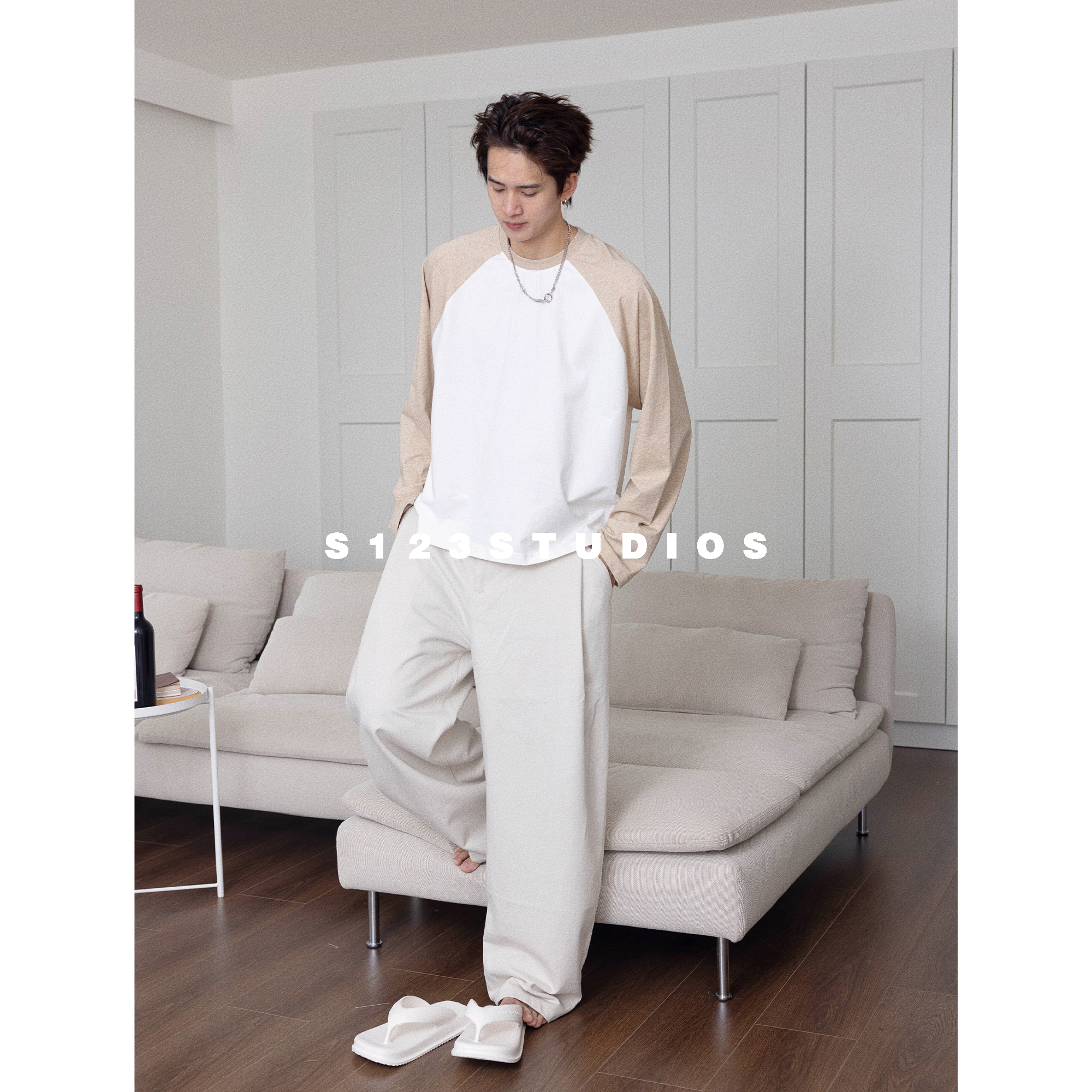 T恤男女同款 休闲撞色拼接长袖 百搭上衣潮 美式 S123早秋新品