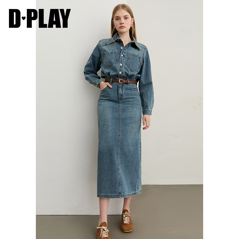 牛仔裙子长裙 蓝色连衣裙女休闲通勤纯棉长款 DPLAY2025年秋季 新款