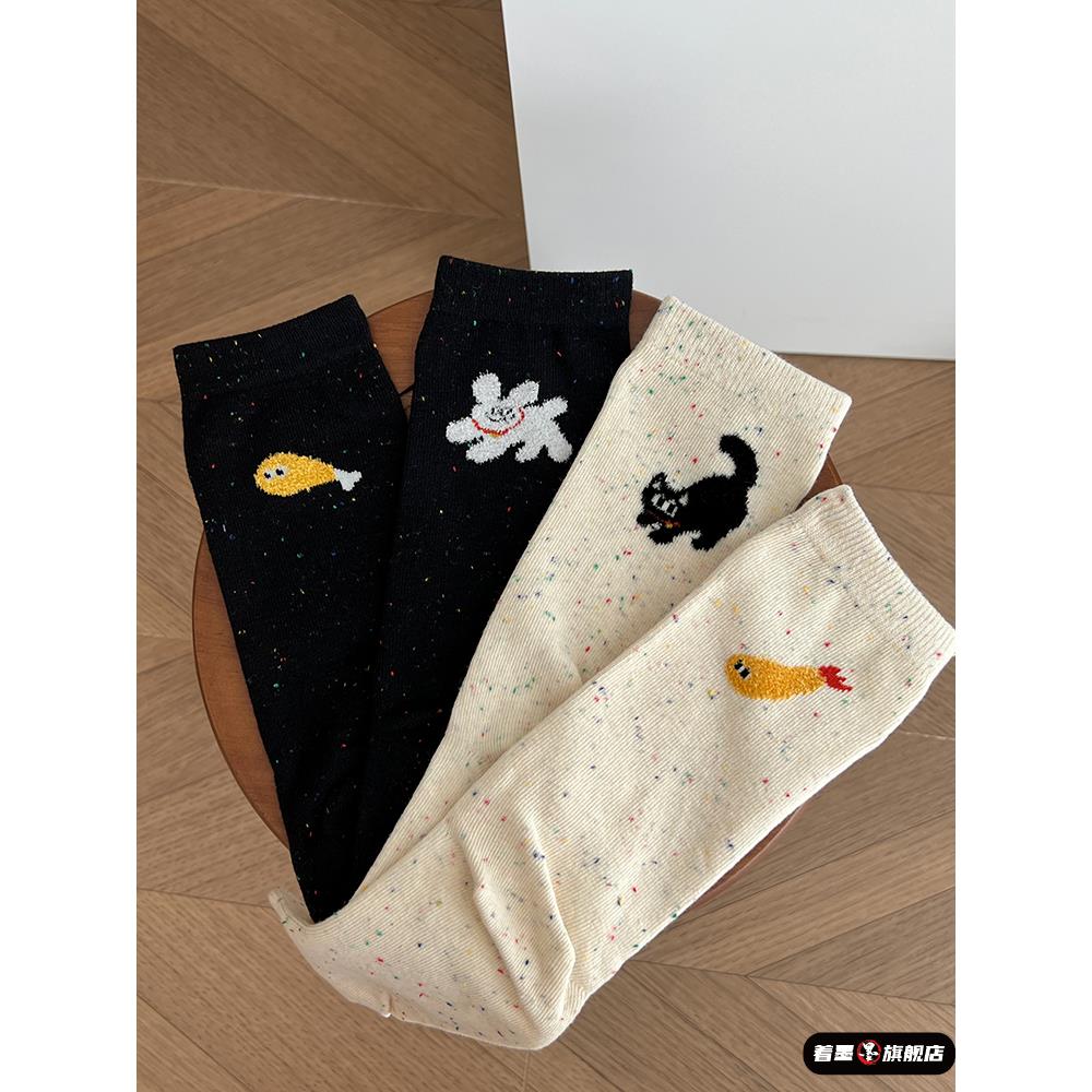 设计感袜子女春秋纯棉中筒袜可爱卡通个性 小猫 长筒ins潮网红韩版
