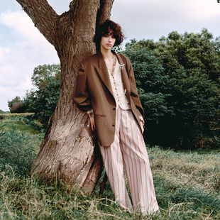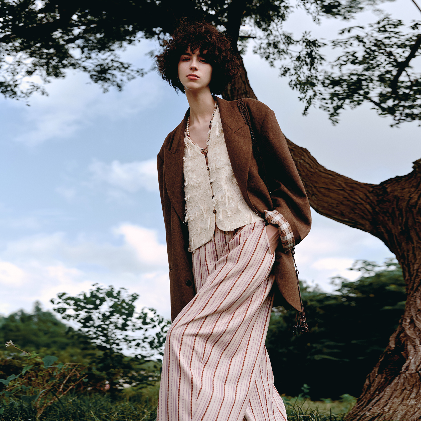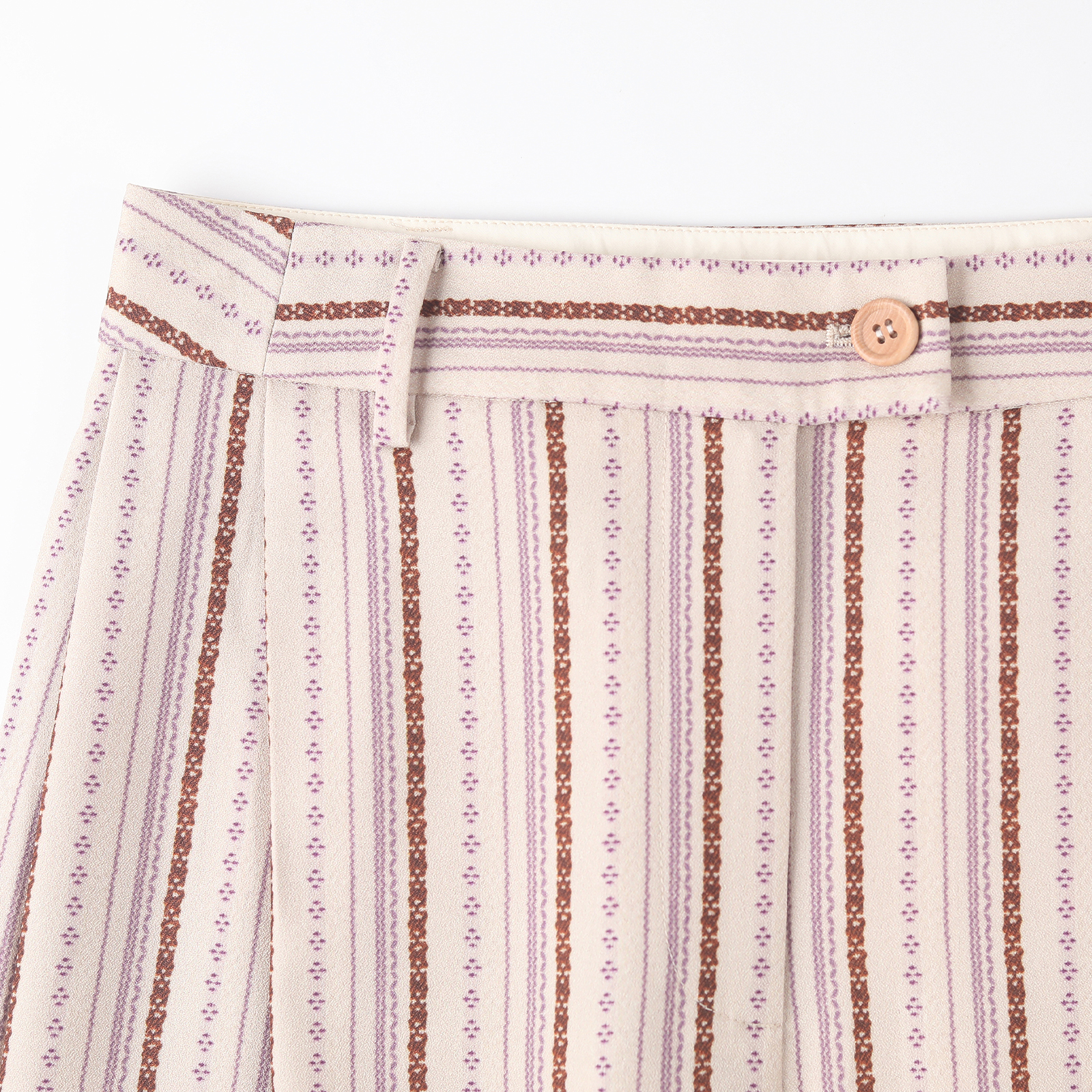 简约杏色百搭休闲裤 2025早秋新品 try条纹印花脚口设计阔腿裤 wana