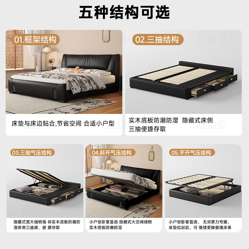 DDC意式 极简黑色真皮床简约婚床高端大气双人床1.8米2米主卧大床