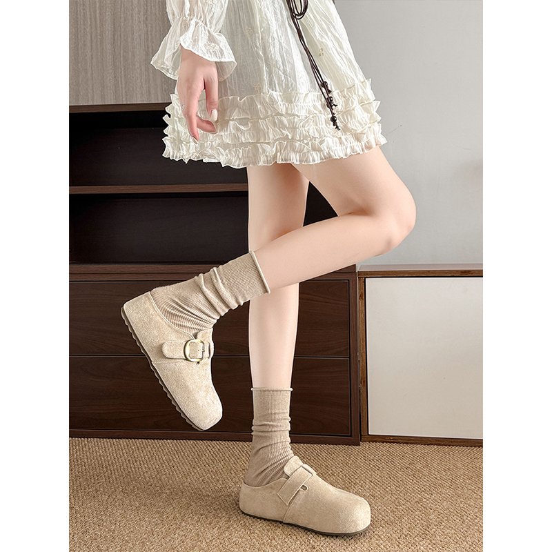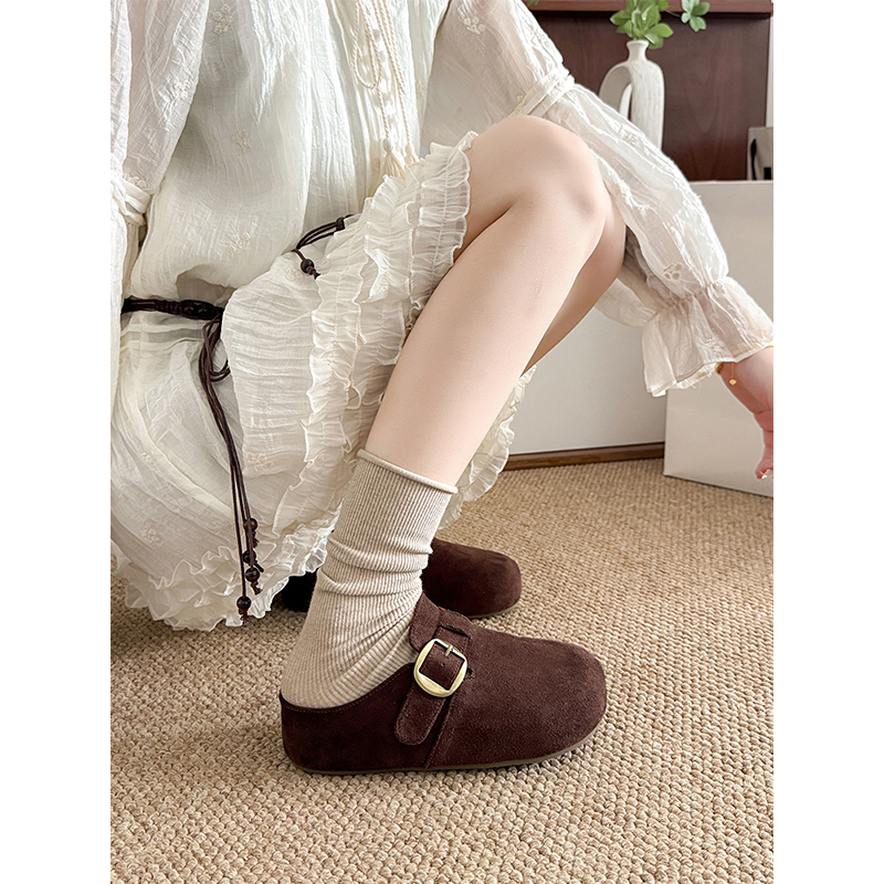 外穿增高包头拖鞋 秋季 女2025新款 南在南方复古棕色厚底半拖勃肯鞋