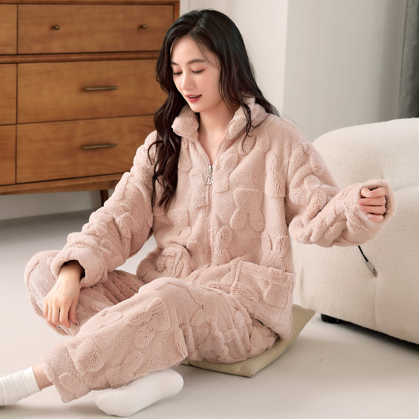 女士加绒加厚两件套装 法兰绒睡衣冬季 珊瑚绒家居服新款 2025秋冬款