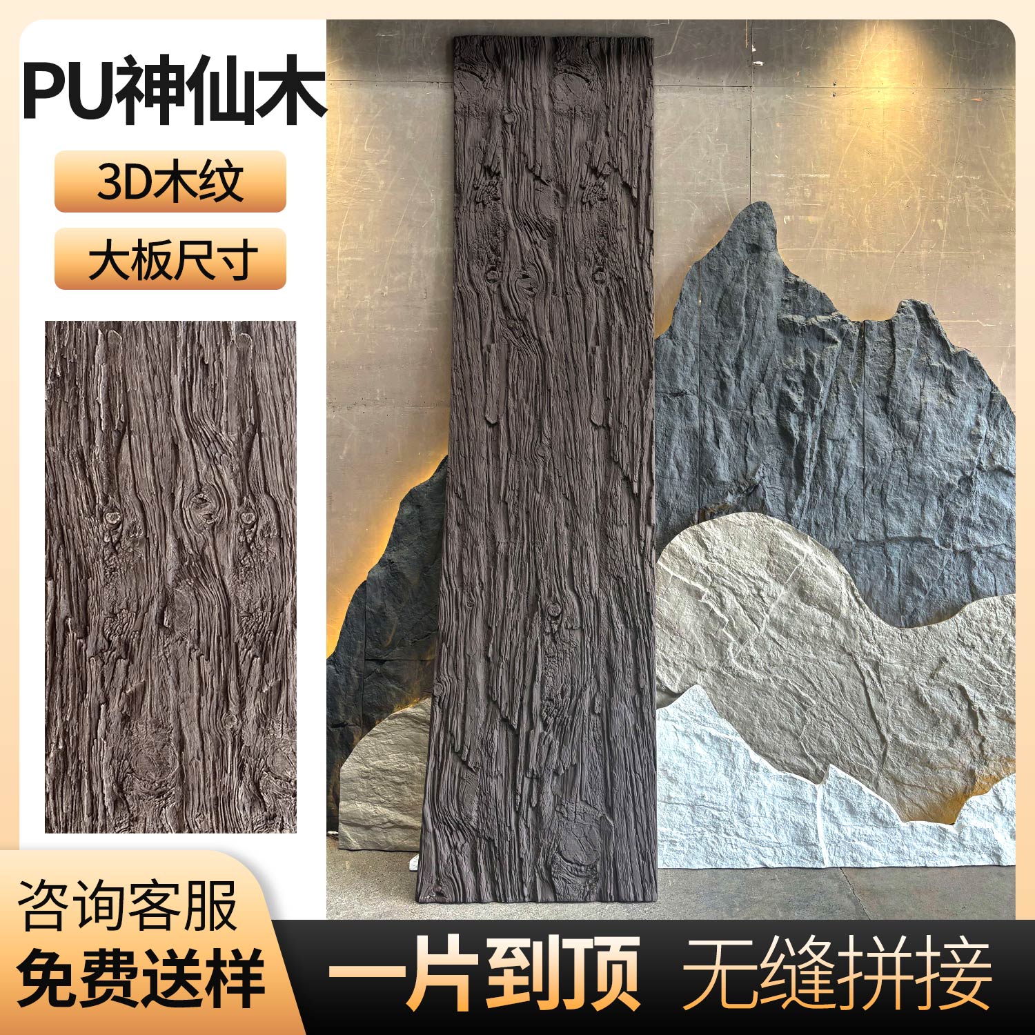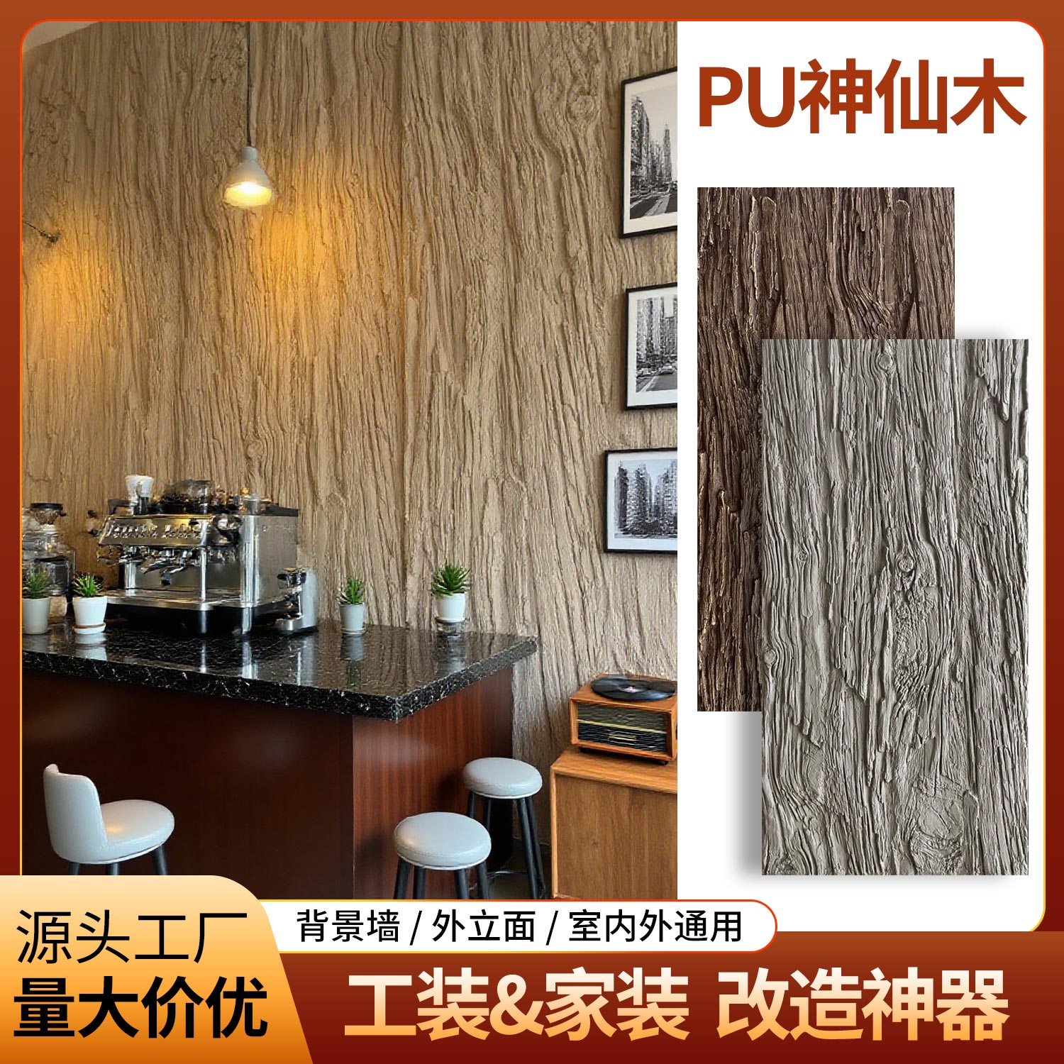 饰风化木板文化石 饰背景墙装 PU神仙木新中式 树皮肌理仿木纹外墙装