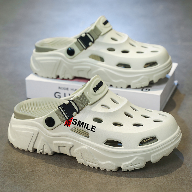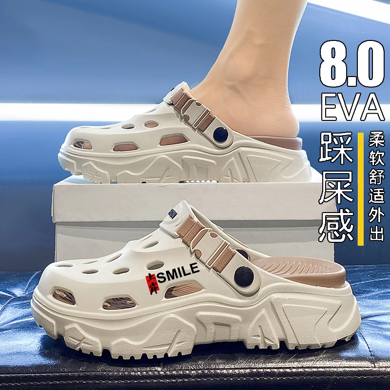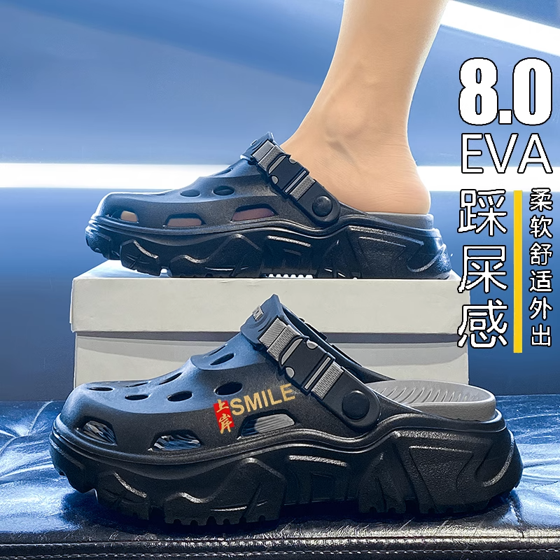 户外运动厚底增高海边沙滩凉鞋 外穿防滑防臭包头拖鞋 男夏季 洞洞鞋