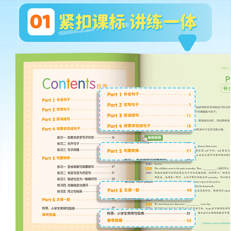 强化连词成句 三到六年级四五年级小升初句型转换句式 荣恒小学英语句子训练 小学生语法大全时态专项练习题练习册仿写句子人教pep版