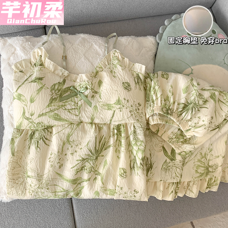 纯棉带胸垫可爱卡通套装 春秋季 女生薄家居服夏 长袖 卡之恋睡衣女款