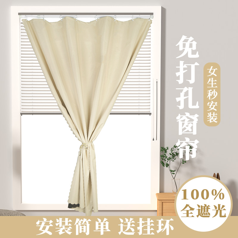 窗帘遮光出租屋窗户免打孔安装 伸缩杆遮阳帘卧室阳台遮光帘遮挡帘