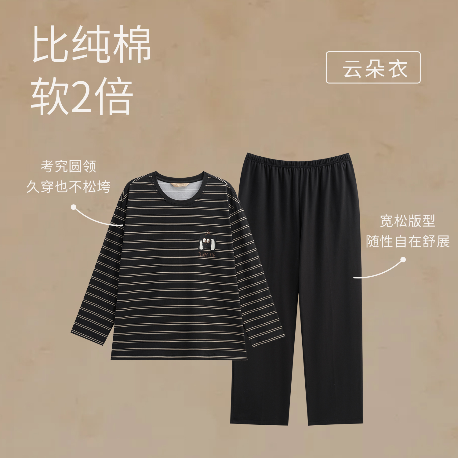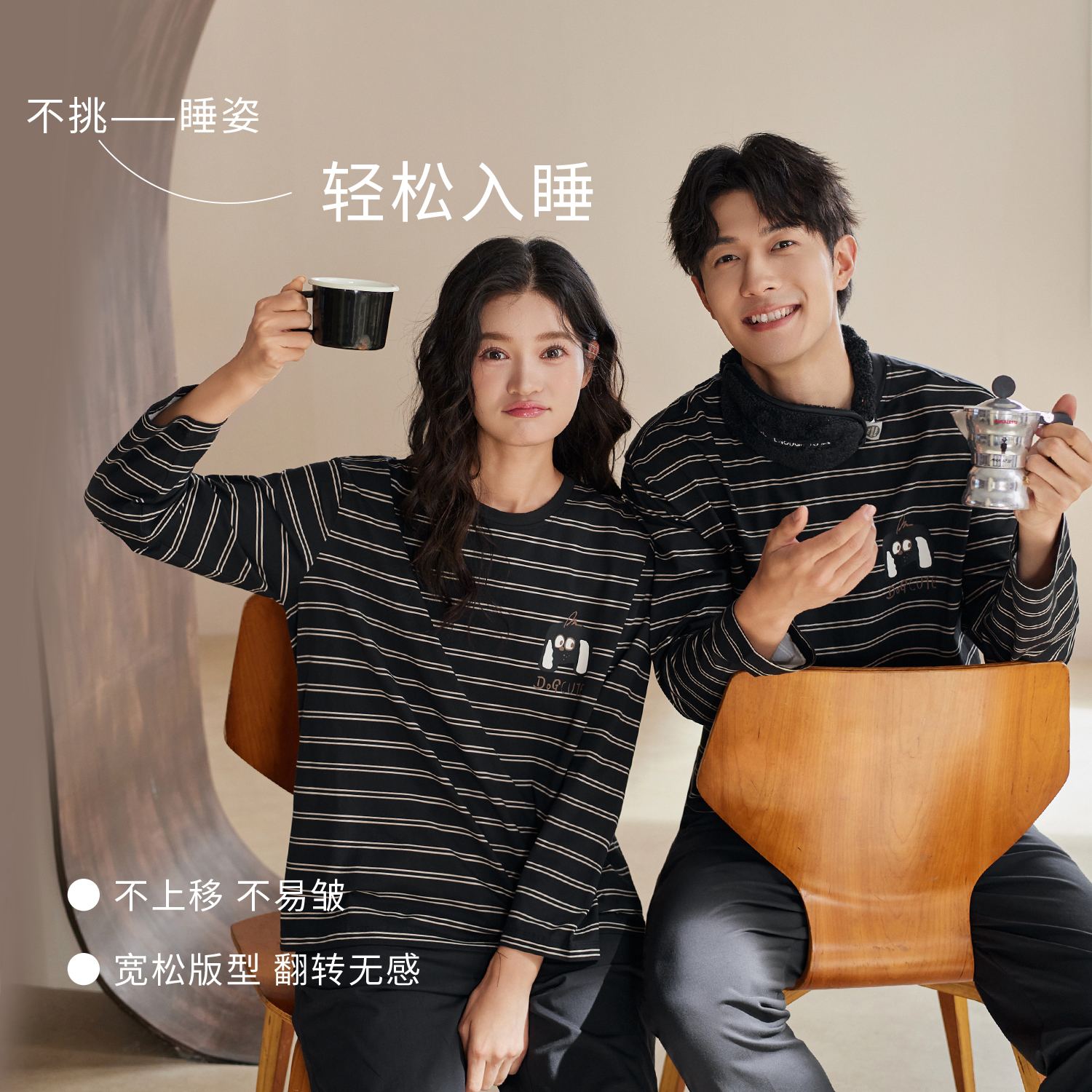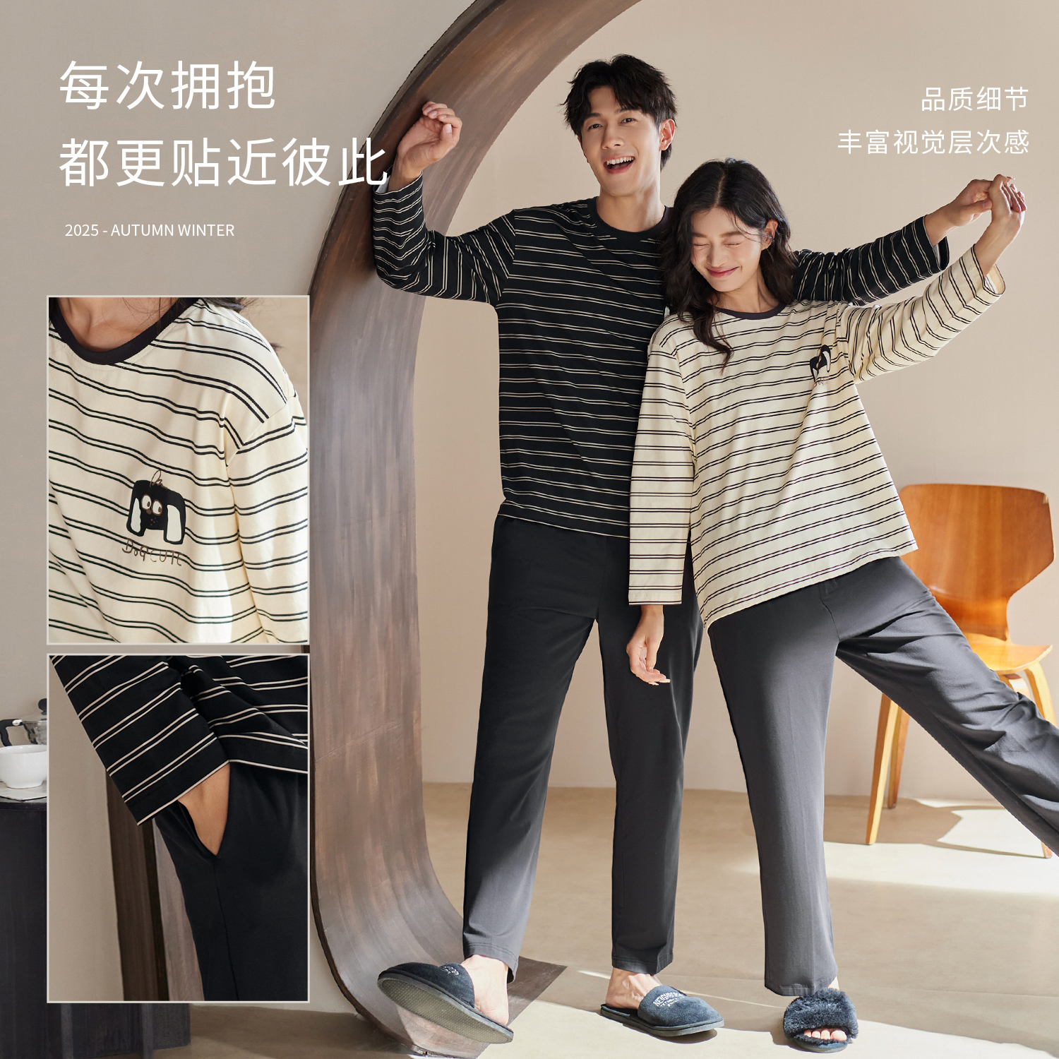 条纹套装 家居服男女休闲大码 长裤 秋鹿情侣睡衣纯棉2025春秋棉长袖
