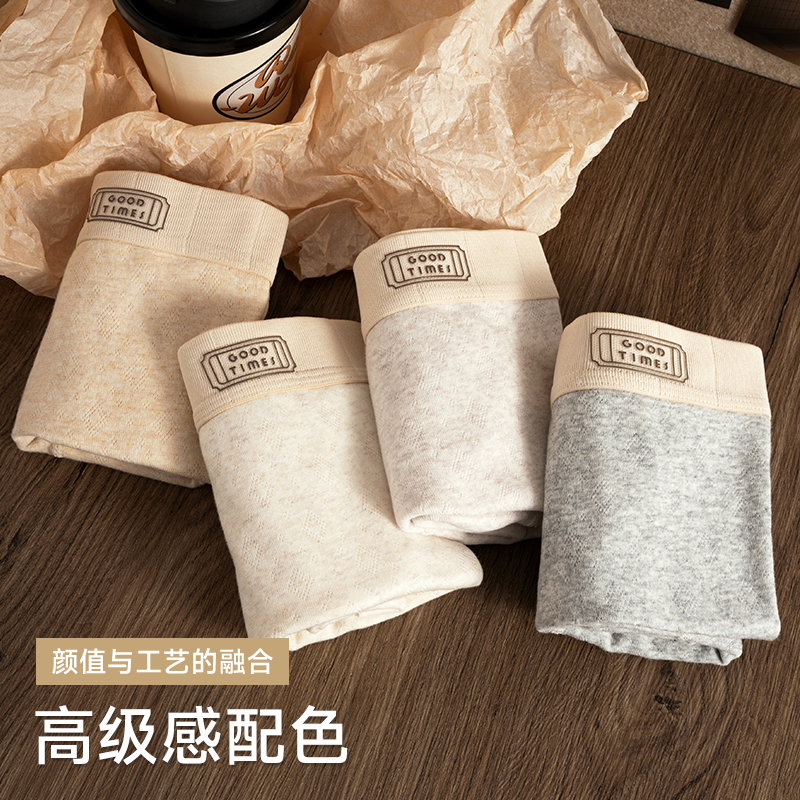新疆棉抗菌裆全棉透气男生平角裤 字母织带新款 内裤 ubras纯棉男士